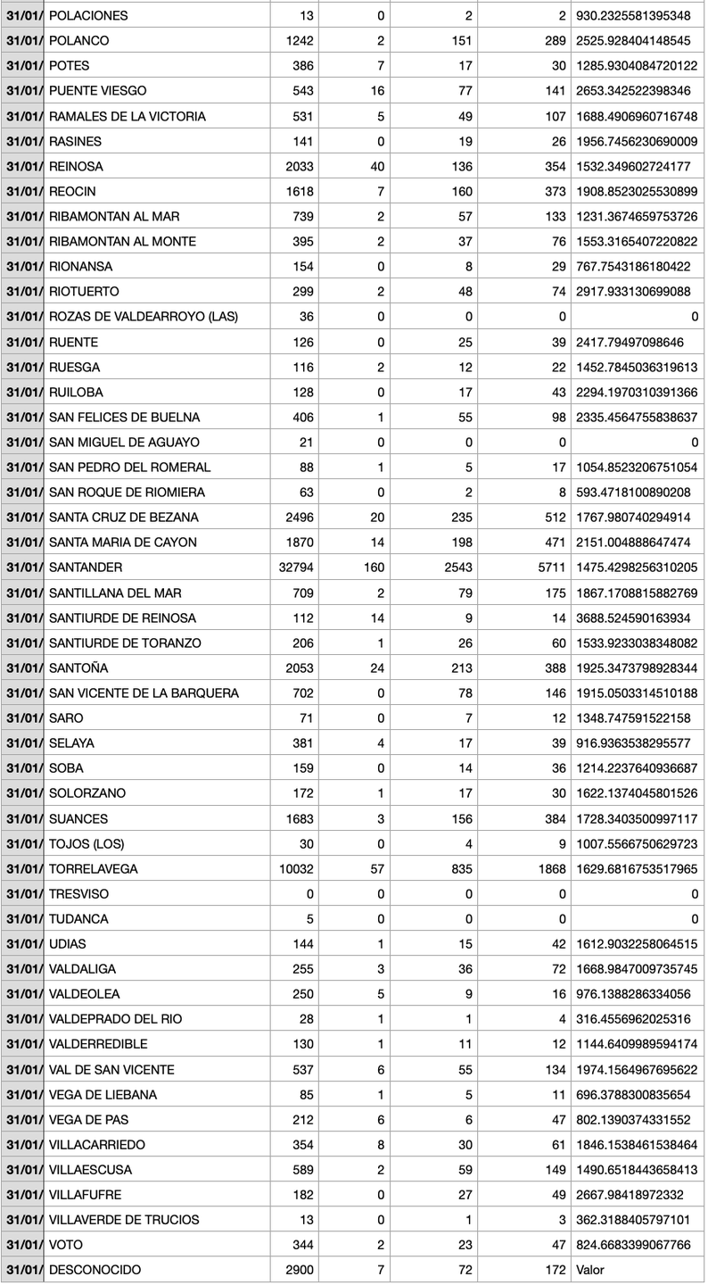 A continuación os dejamos las tablas de casos nuevos a 7 y 14 días por municipios, incluimos la INCIDENCIA ACUMULADA A 7 DÍAS, son los datos sumados hasta este lunes 31 a las 23:59 horas.
