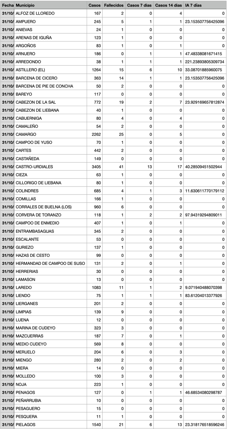 Para entender la tabla, Casos: Total desde el inicio de la pandemia. Fallecidos: Total desde el inicio de la pandemia. Casos 7: son casos nuevos en los últimos 7 días. Casos 14: Casos nuevos en los últimos 14 días. IA 7 días: Incidencia acumulada a 7 días sobre 100.000 habitantes.