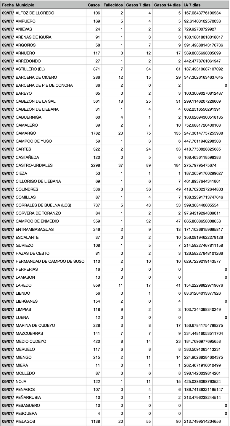 Para entender la tabla, Casos: Total desde el inicio de la pandemia. Fallecidos: Total desde el inicio de la pandemia. Casos 7: son casos nuevos en los últimos 7 días. Casos 14: Casos nuevos en los últimos 14 días. IA 7 días: Incidencia acumulada a 7 días sobre 100.000 habitantes.