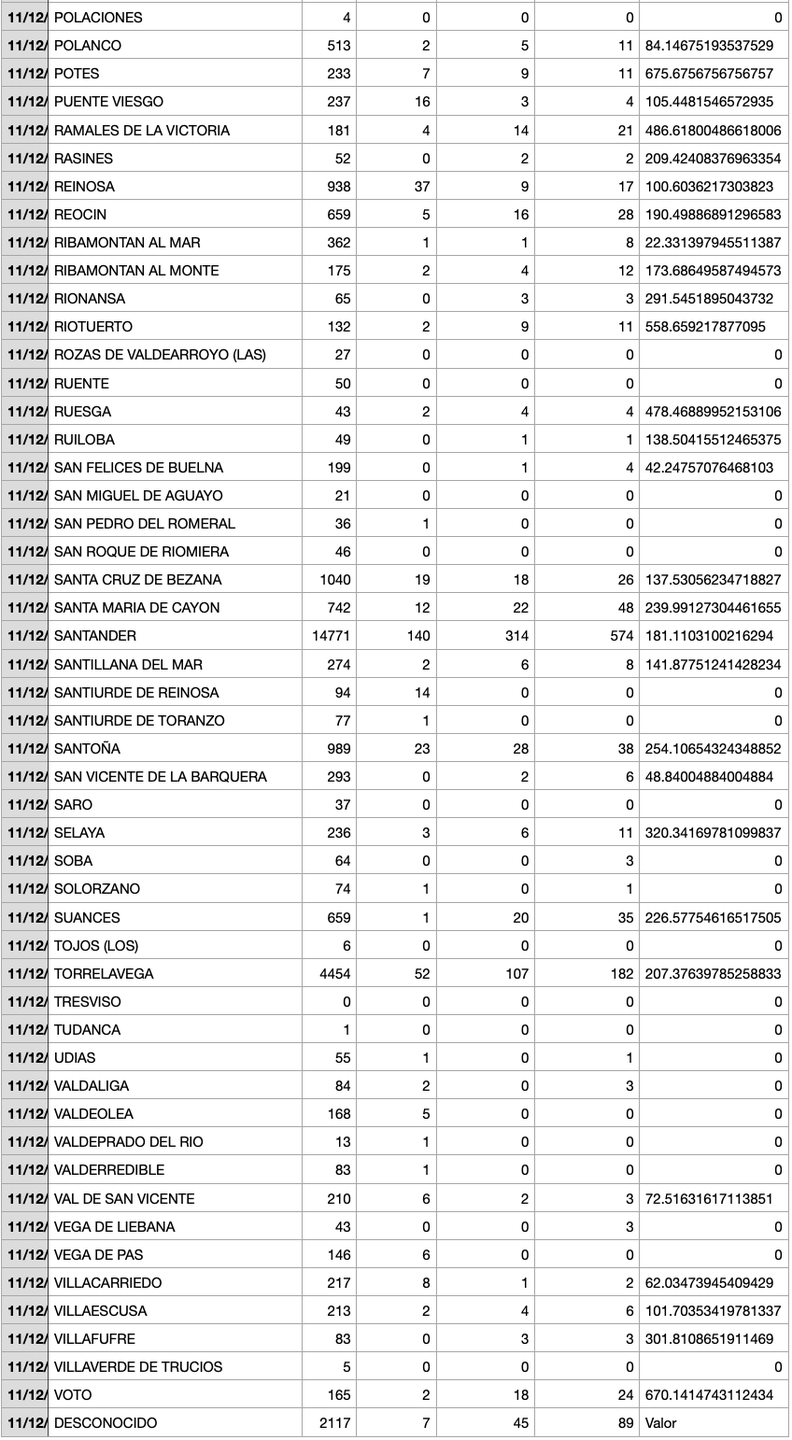 A continuación os dejamos las tablas de casos nuevos a 7 y 14 días por municipios, incluimos la INCIDENCIA ACUMULADA A 7 DÍAS, son los datos sumados hasta este sábado 11 a las 23:59 horas.