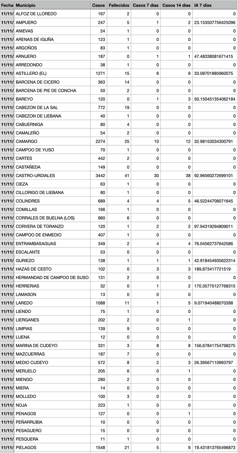 Para entender la tabla, Casos: Total desde el inicio de la pandemia. Fallecidos: Total desde el inicio de la pandemia. Casos 7: son casos nuevos en los últimos 7 días. Casos 14: Casos nuevos en los últimos 14 días. IA 7 días: Incidencia acumulada a 7 días sobre 100.000 habitantes.