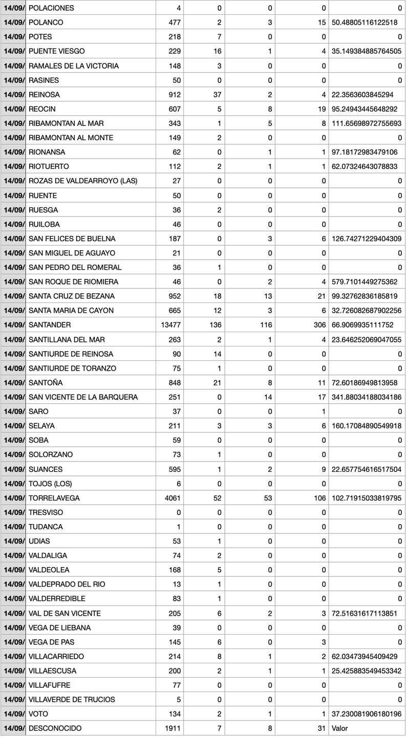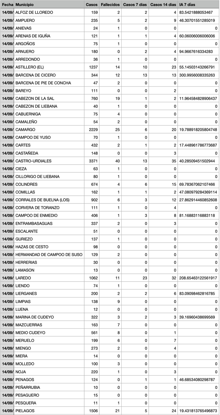Para entender la tabla, Casos: Total desde el inicio de la pandemia. Fallecidos: Total desde el inicio de la pandemia. Casos 7: son casos nuevos en los últimos 7 días. Casos 14: Casos nuevos en los últimos 14 días. IA 7 días: Incidencia acumulada a 7 días sobre 100.000 habitantes.