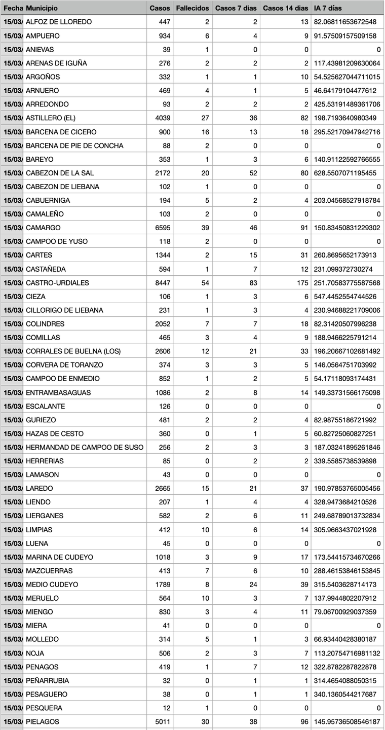 Para entender la tabla, Casos: Total desde el inicio de la pandemia. Fallecidos: Total desde el inicio de la pandemia. Casos 7: son casos nuevos en los últimos 7 días. Casos 14: Casos nuevos en los últimos 14 días. IA 7 días: Incidencia acumulada a 7 días sobre 100.000 habitantes.
