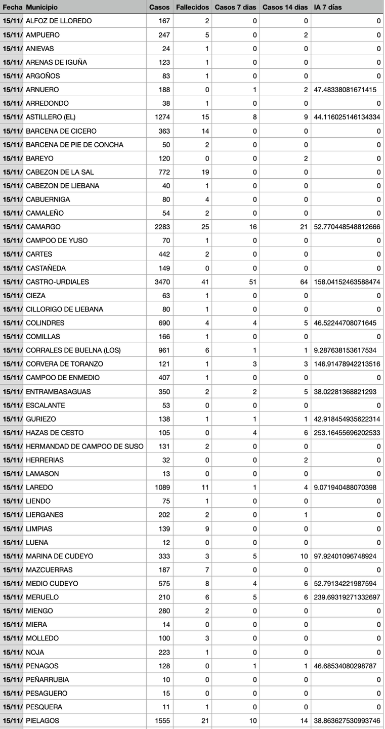 Para entender la tabla, Casos: Total desde el inicio de la pandemia. Fallecidos: Total desde el inicio de la pandemia. Casos 7: son casos nuevos en los últimos 7 días. Casos 14: Casos nuevos en los últimos 14 días. IA 7 días: Incidencia acumulada a 7 días sobre 100.000 habitantes.