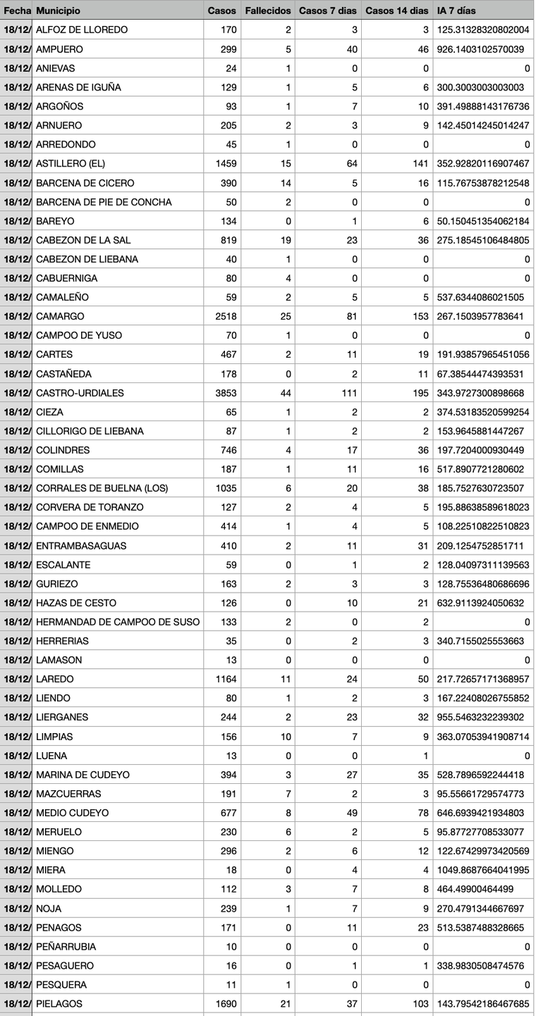 Para entender la tabla, Casos: Total desde el inicio de la pandemia. Fallecidos: Total desde el inicio de la pandemia. Casos 7: son casos nuevos en los últimos 7 días. Casos 14: Casos nuevos en los últimos 14 días. IA 7 días: Incidencia acumulada a 7 días sobre 100.000 habitantes.