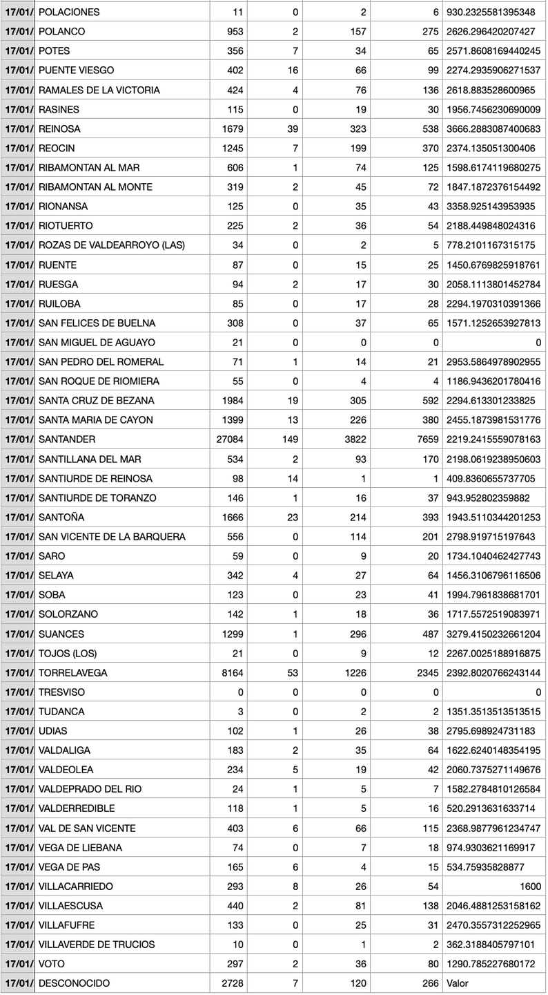 A continuación os dejamos las tablas de casos nuevos a 7 y 14 días por municipios, incluimos la INCIDENCIA ACUMULADA A 7 DÍAS, son los datos sumados hasta este lunes 17 a las 23:59 horas.