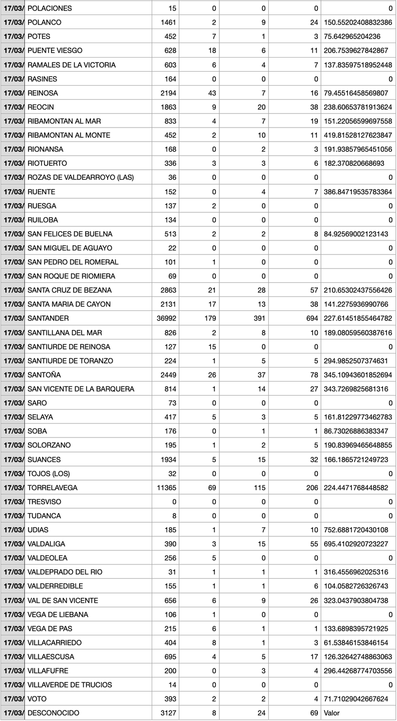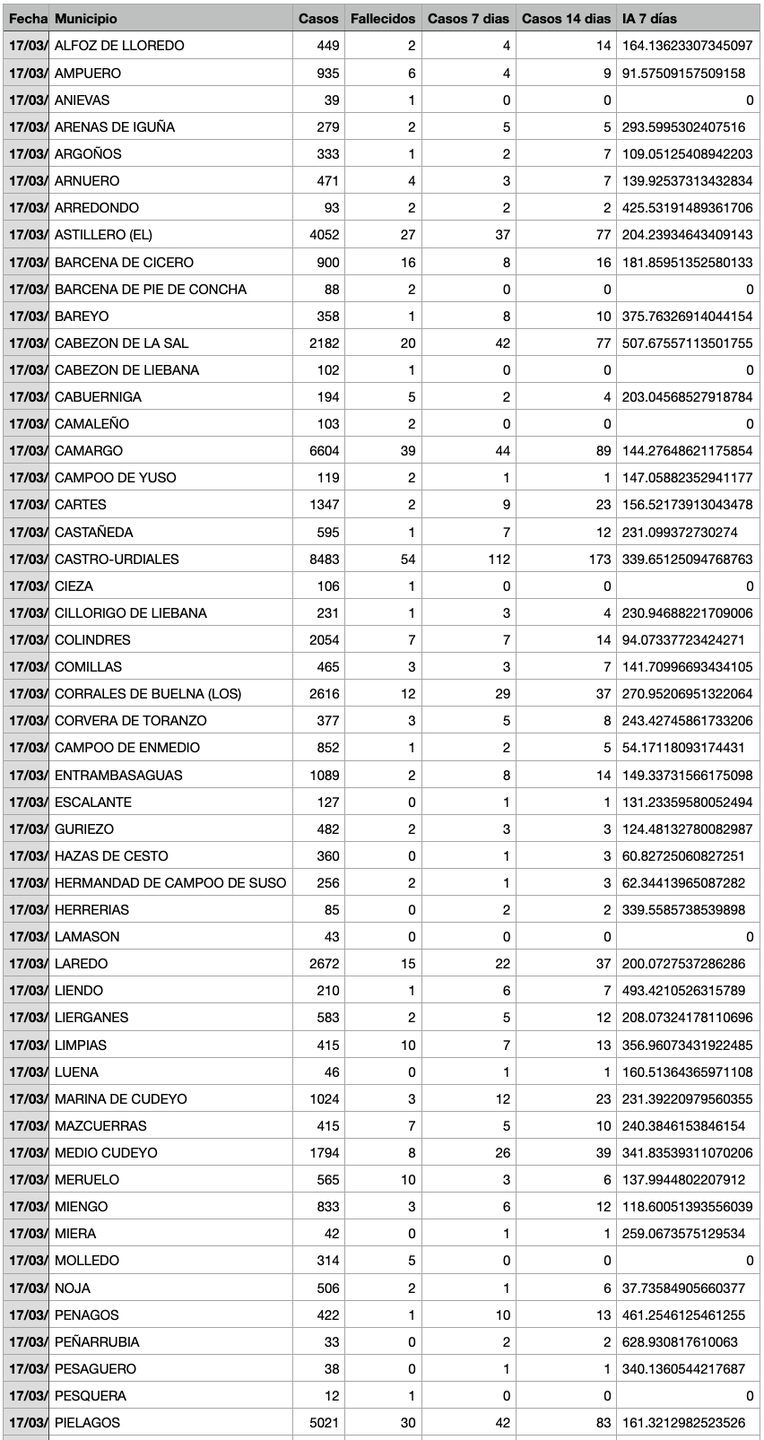 Para entender la tabla, Casos: Total desde el inicio de la pandemia. Fallecidos: Total desde el inicio de la pandemia. Casos 7: son casos nuevos en los últimos 7 días. Casos 14: Casos nuevos en los últimos 14 días. IA 7 días: Incidencia acumulada a 7 días sobre 100.000 habitantes.