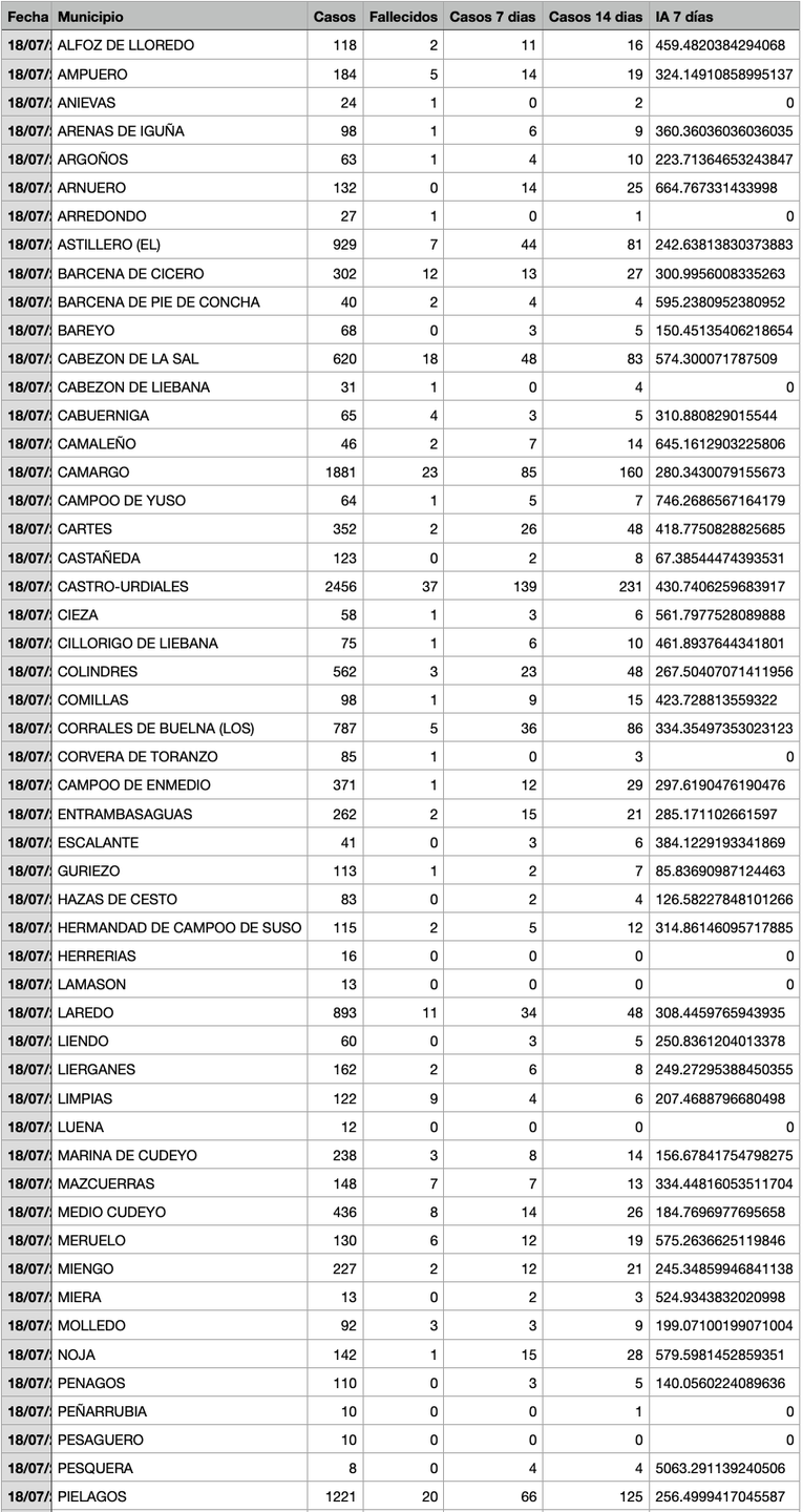 Para entender la tabla, Casos: Total desde el inicio de la pandemia. Fallecidos: Total desde el inicio de la pandemia. Casos 7: son casos nuevos en los últimos 7 días. Casos 14: Casos nuevos en los últimos 14 días. IA 7 días: Incidencia acumulada a 7 días sobre 100.000 habitantes.
