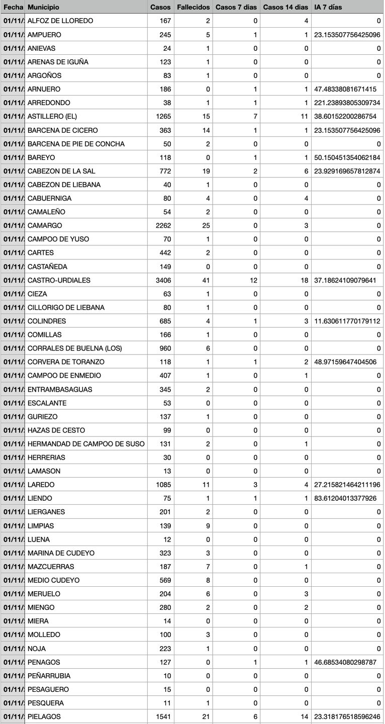 Para entender la tabla, Casos: Total desde el inicio de la pandemia. Fallecidos: Total desde el inicio de la pandemia. Casos 7: son casos nuevos en los últimos 7 días. Casos 14: Casos nuevos en los últimos 14 días. IA 7 días: Incidencia acumulada a 7 días sobre 100.000 habitantes.
