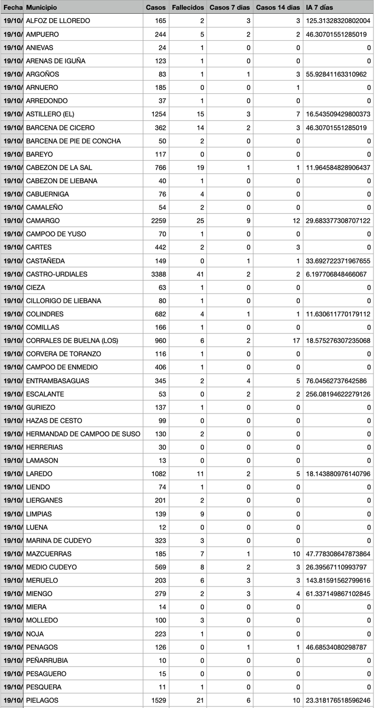 Para entender la tabla, Casos: Total desde el inicio de la pandemia. Fallecidos: Total desde el inicio de la pandemia. Casos 7: son casos nuevos en los últimos 7 días. Casos 14: Casos nuevos en los últimos 14 días. IA 7 días: Incidencia acumulada a 7 días sobre 100.000 habitantes.