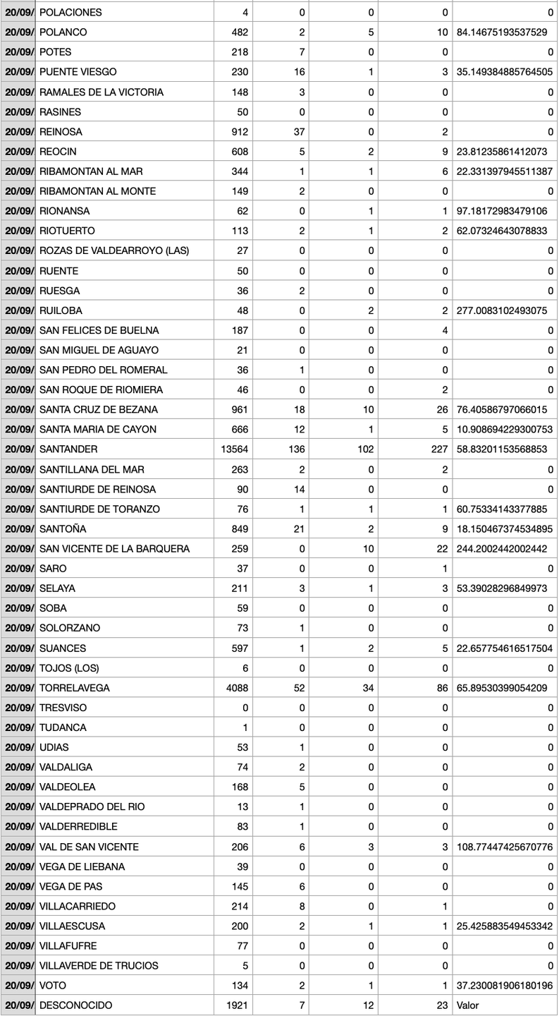 A continuación os dejamos las tablas de casos nuevos a 7 y 14 días por municipios, incluimos la INCIDENCIA ACUMULADA A 7 DÍAS, son los datos sumados hasta este lunes 20 a las 23:59 horas.