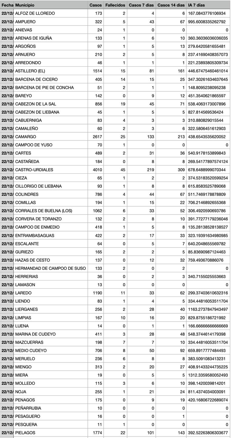 Para entender la tabla, Casos: Total desde el inicio de la pandemia. Fallecidos: Total desde el inicio de la pandemia. Casos 7: son casos nuevos en los últimos 7 días. Casos 14: Casos nuevos en los últimos 14 días. IA 7 días: Incidencia acumulada a 7 días sobre 100.000 habitantes.
