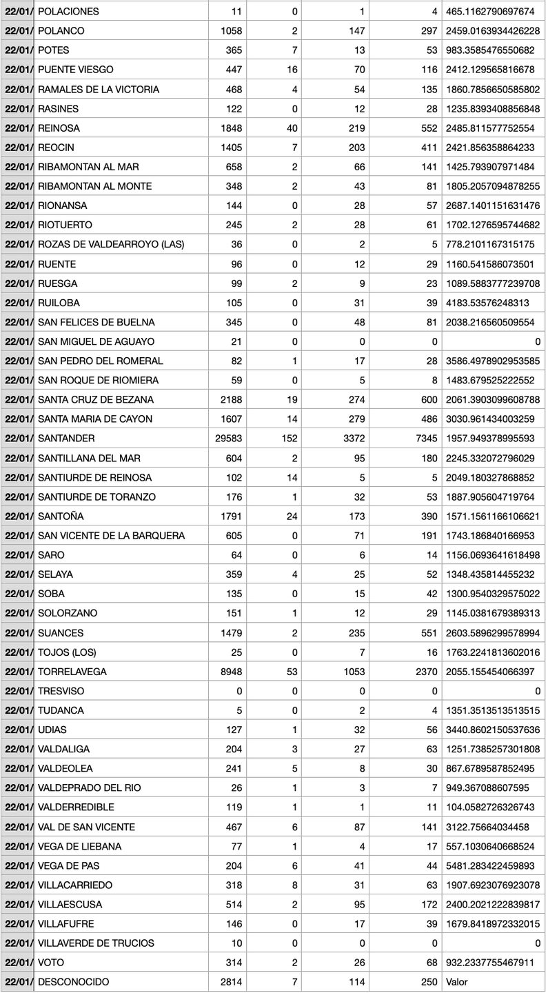 A continuación os dejamos las tablas de casos nuevos a 7 y 14 días por municipios, incluimos la INCIDENCIA ACUMULADA A 7 DÍAS, son los datos sumados hasta este sábado 22 a las 23:59 horas.