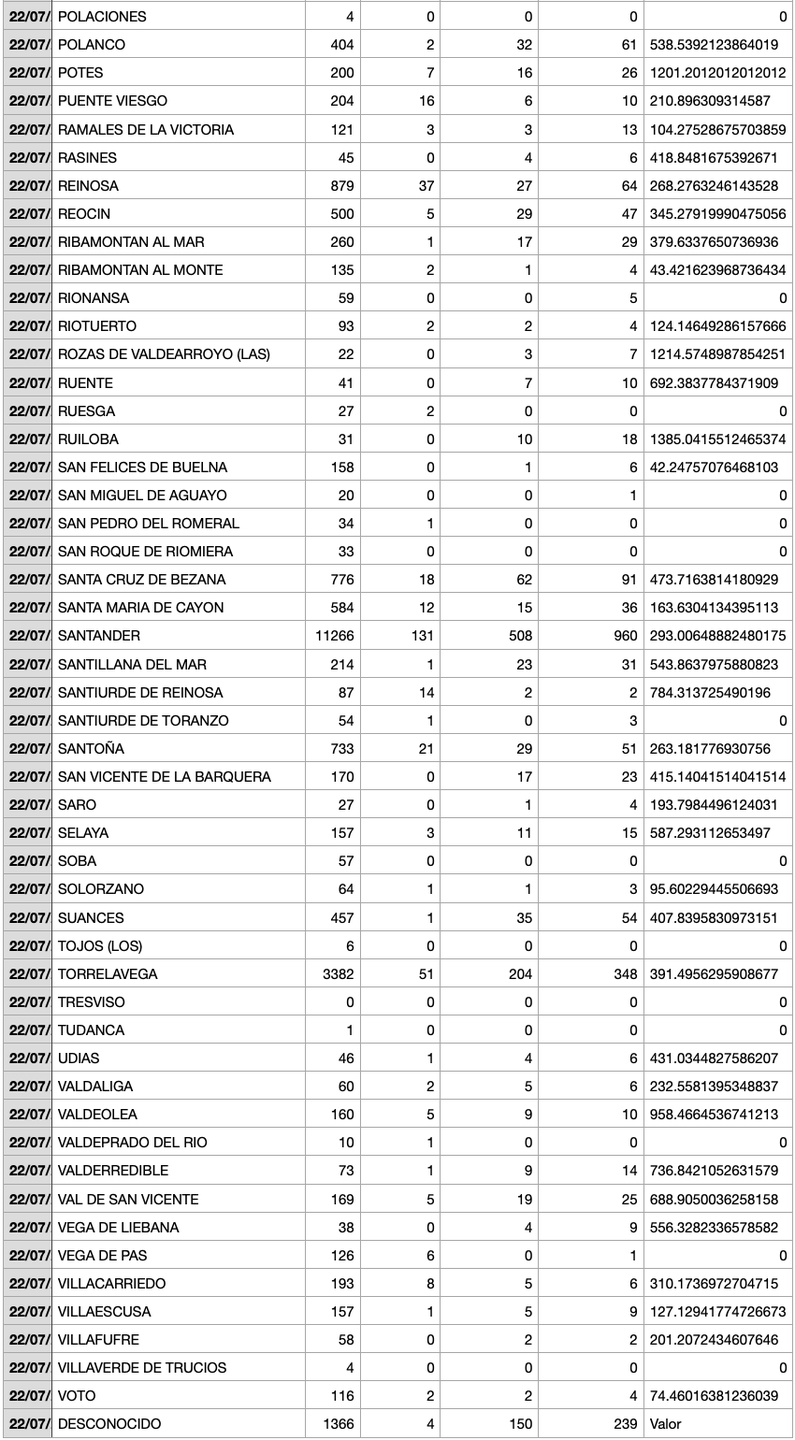 A continuación os dejamos las tablas de casos nuevos a 7 y 14 días por municipios, incluimos la INCIDENCIA ACUMULADA A 7 DÍAS, son los datos sumados hasta este jueves 22 a las 23:59 horas.