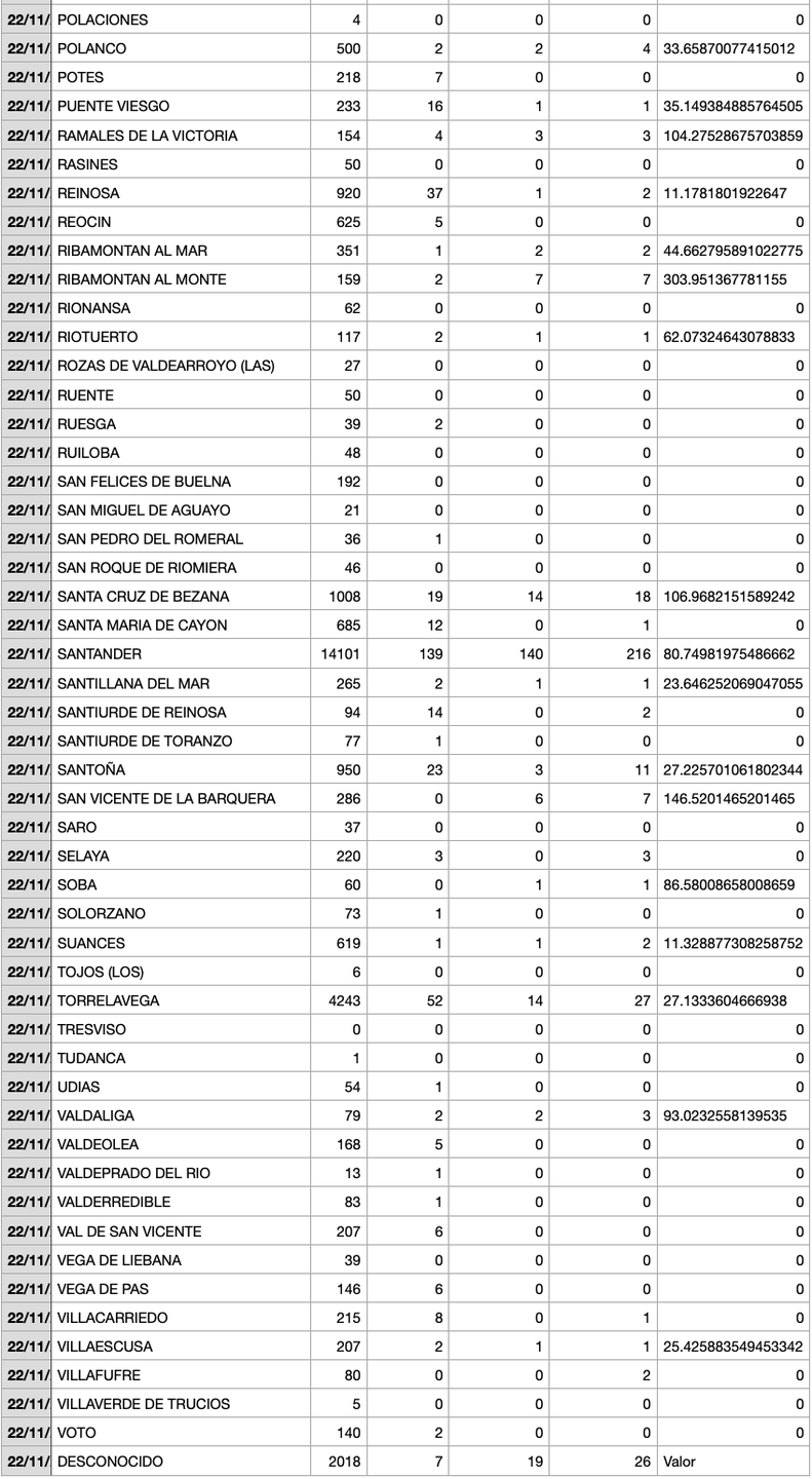 A continuación os dejamos las tablas de casos nuevos a 7 y 14 días por municipios, incluimos la INCIDENCIA ACUMULADA A 7 DÍAS, son los datos sumados hasta este lunes 22 a las 23:59 horas.
