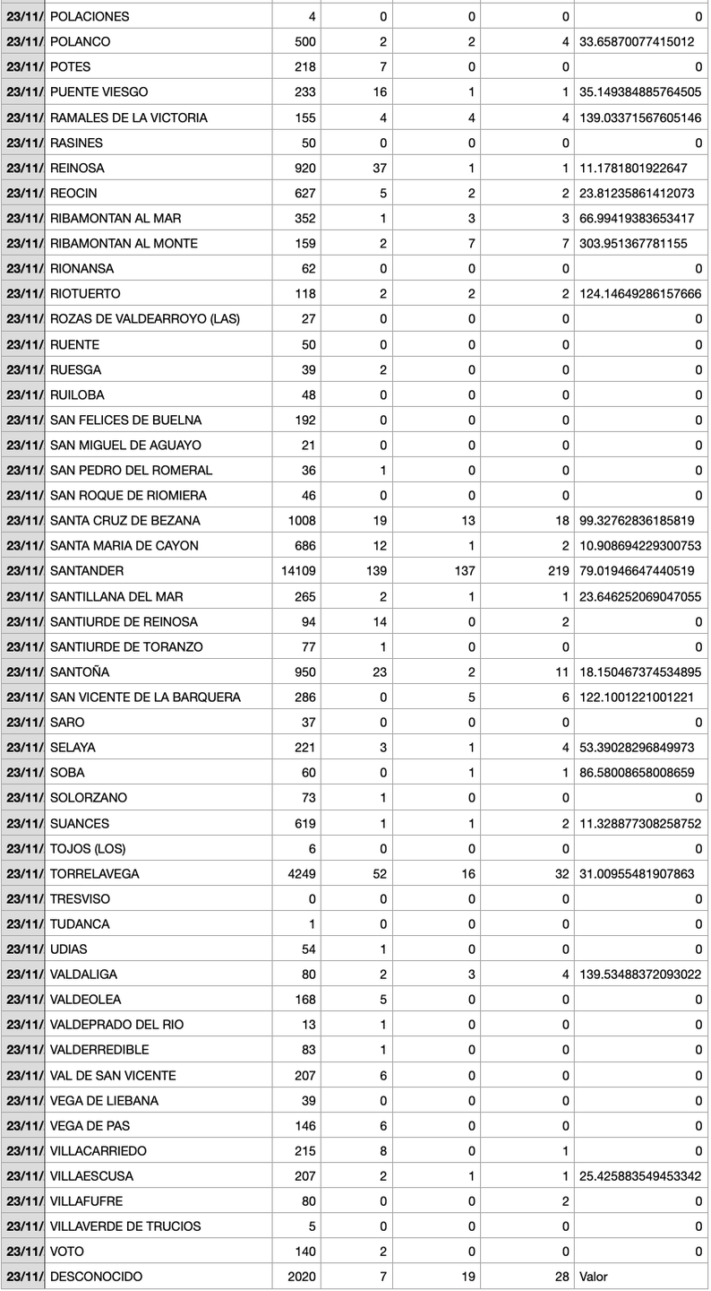 A continuación os dejamos las tablas de casos nuevos a 7 y 14 días por municipios, incluimos la INCIDENCIA ACUMULADA A 7 DÍAS, son los datos sumados hasta este martes 23 a las 23:59 horas.