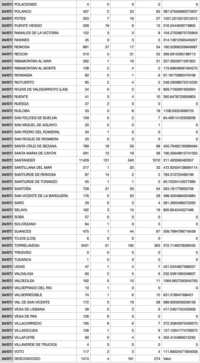 A continuación os dejamos las tablas de casos nuevos a 7 y 14 días por municipios, incluimos la INCIDENCIA ACUMULADA A 7 DÍAS, son los datos sumados hasta este sábado 24 a las 23:59 horas.