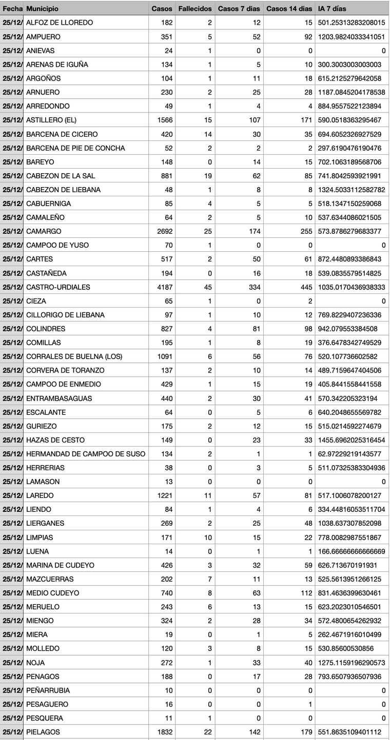 Para entender la tabla, Casos: Total desde el inicio de la pandemia. Fallecidos: Total desde el inicio de la pandemia. Casos 7: son casos nuevos en los últimos 7 días. Casos 14: Casos nuevos en los últimos 14 días. IA 7 días: Incidencia acumulada a 7 días sobre 100.000 habitantes.
