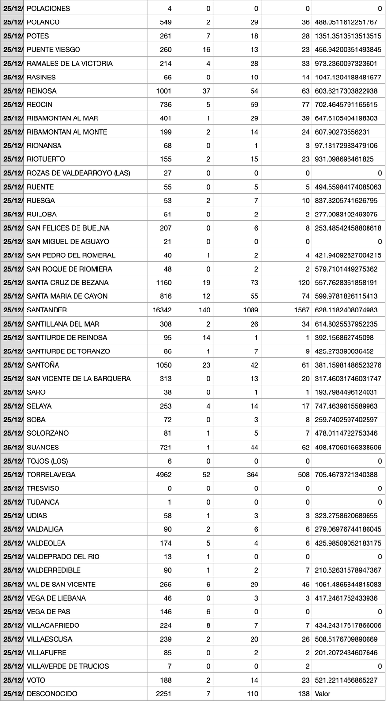 A continuación os dejamos las tablas de casos nuevos a 7 y 14 días por municipios, incluimos la INCIDENCIA ACUMULADA A 7 DÍAS, son los datos sumados hasta este sábado 25 a las 23:59 horas.