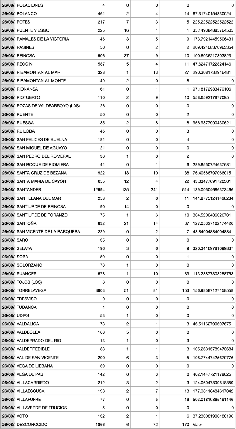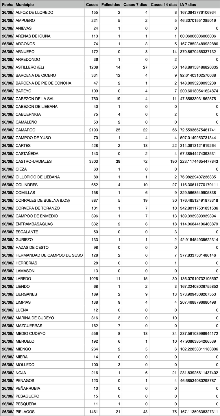 Para entender la tabla, Casos: Total desde el inicio de la pandemia. Fallecidos: Total desde el inicio de la pandemia. Casos 7: son casos nuevos en los últimos 7 días. Casos 14: Casos nuevos en los últimos 14 días. IA 7 días: Incidencia acumulada a 7 días sobre 100.000 habitantes.