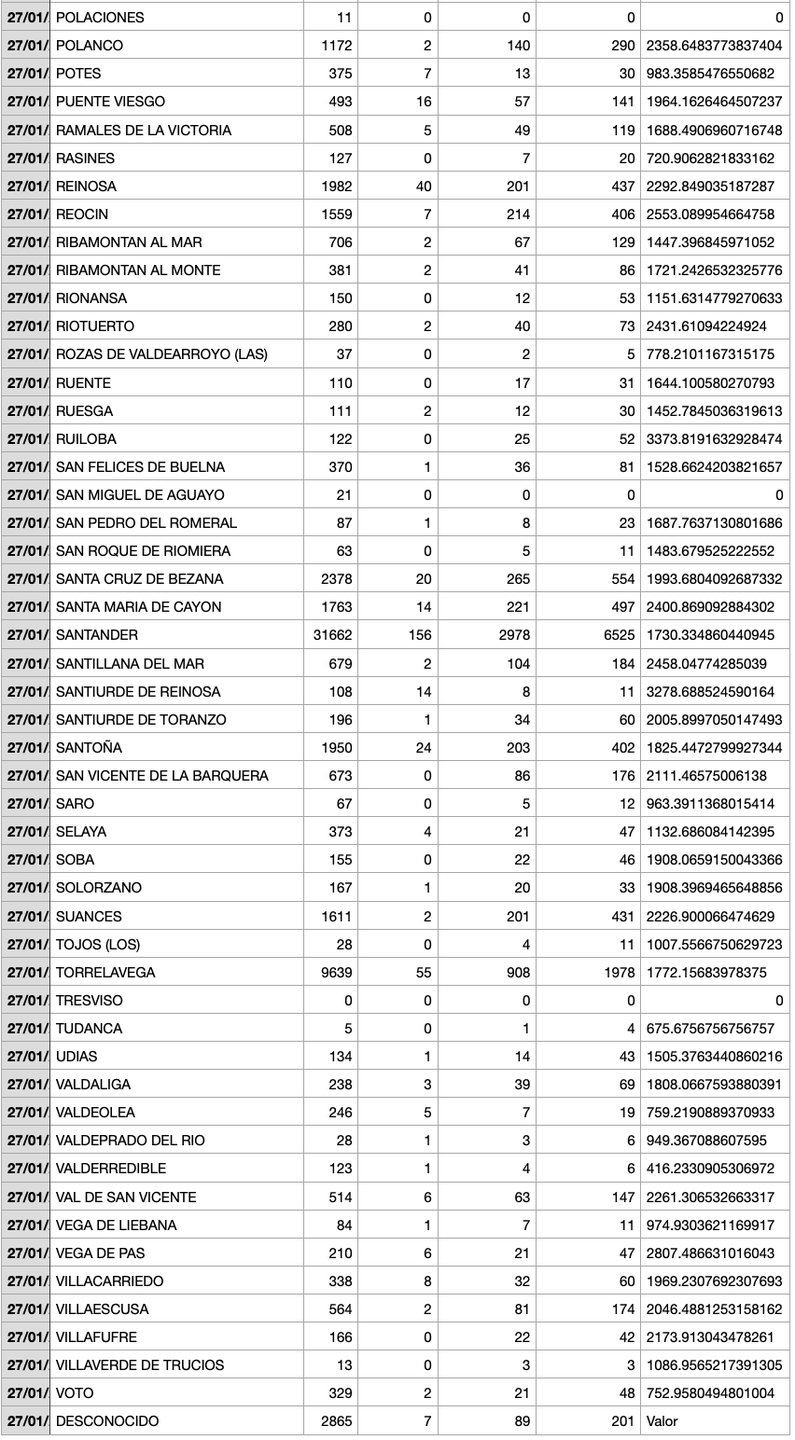 A continuación os dejamos las tablas de casos nuevos a 7 y 14 días por municipios, incluimos la INCIDENCIA ACUMULADA A 7 DÍAS, son los datos sumados hasta este jueves 27 a las 23:59 horas.