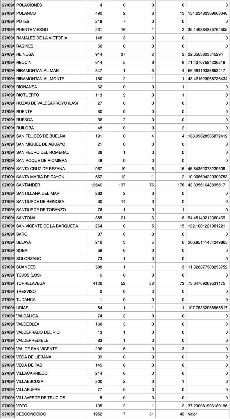 A continuación os dejamos las tablas de casos nuevos a 7 y 14 días por municipios, incluimos la INCIDENCIA ACUMULADA A 7 DÍAS, son los datos sumados hasta este lunes 27 a las 23:59 horas.