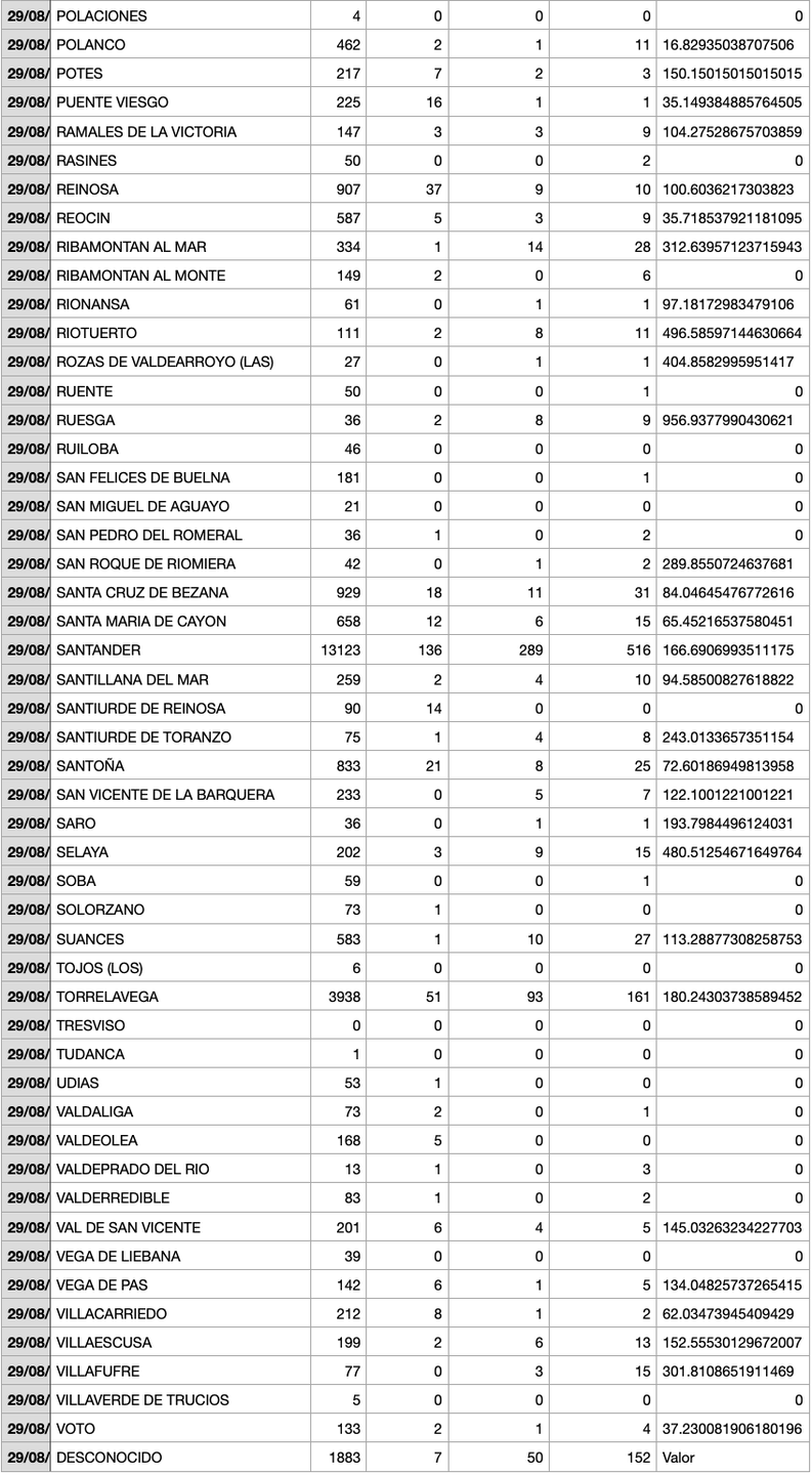 Para entender la tabla, Casos: Total desde el inicio de la pandemia. Fallecidos: Total desde el inicio de la pandemia. Casos 7: son casos nuevos en los últimos 7 días. Casos 14: Casos nuevos en los últimos 14 días. IA 7 días: Incidencia acumulada a 7 días sobre 100.000 habitantes.