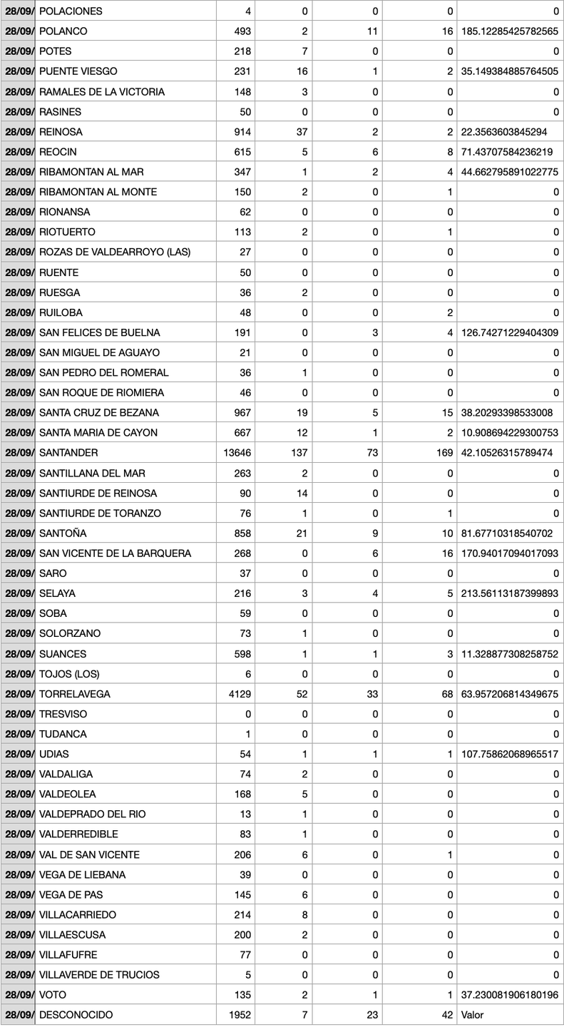 A continuación os dejamos las tablas de casos nuevos a 7 y 14 días por municipios, incluimos la INCIDENCIA ACUMULADA A 7 DÍAS, son los datos sumados hasta este martes 28 a las 23:59 horas.