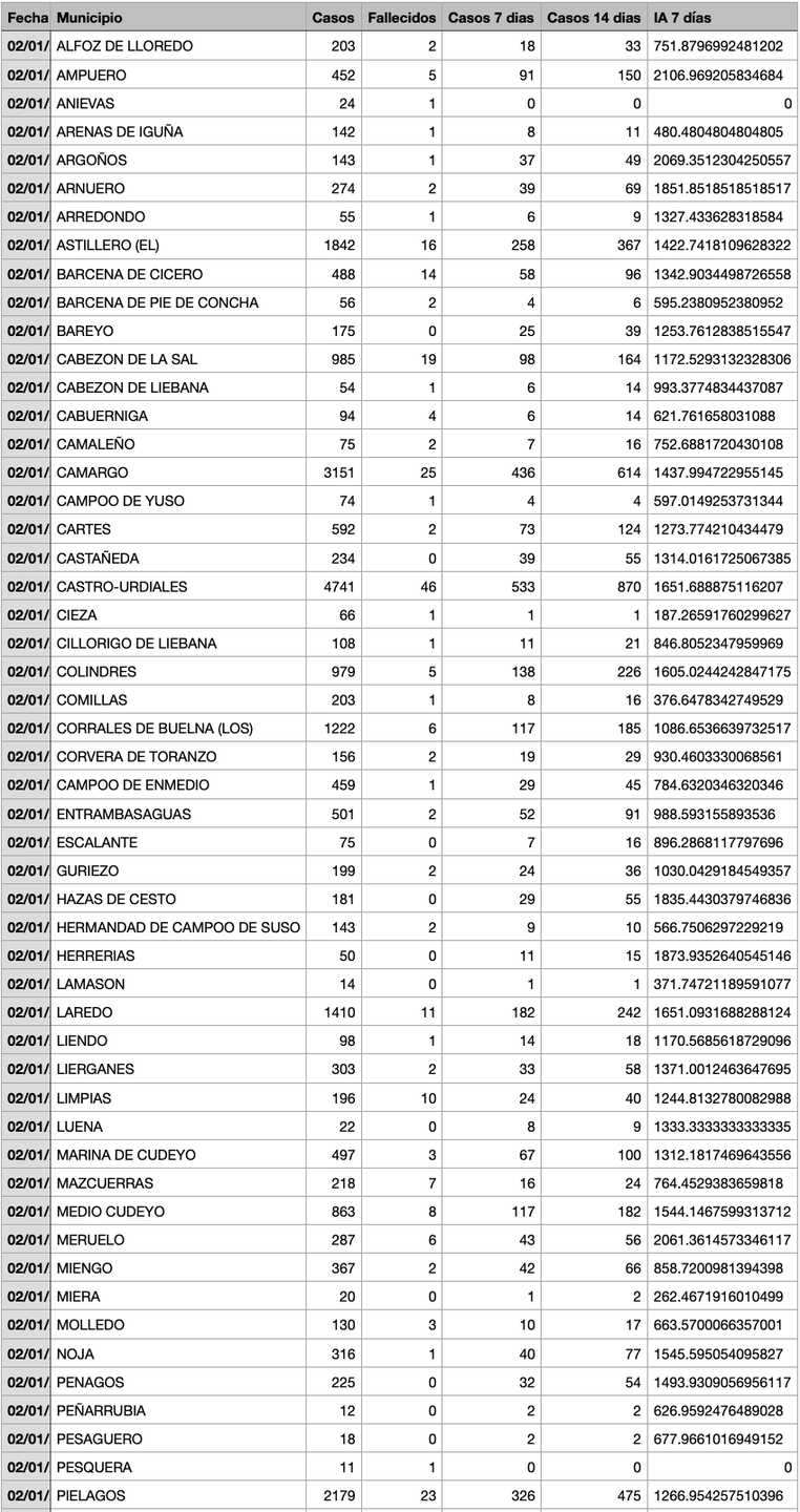 Para entender la tabla, Casos: Total desde el inicio de la pandemia. Fallecidos: Total desde el inicio de la pandemia. Casos 7: son casos nuevos en los últimos 7 días. Casos 14: Casos nuevos en los últimos 14 días. IA 7 días: Incidencia acumulada a 7 días sobre 100.000 habitantes.