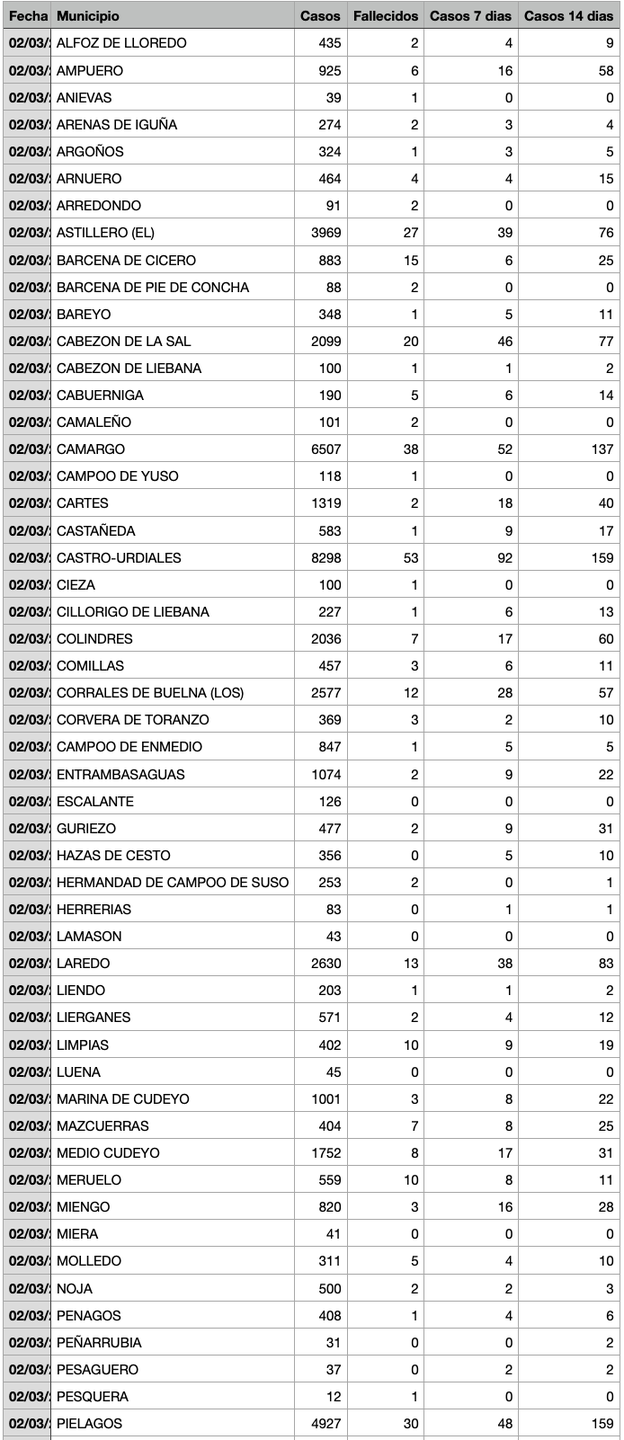 Para entender la tabla, Casos: Total desde el inicio de la pandemia. Fallecidos: Total desde el inicio de la pandemia. Casos 7: son casos nuevos en los últimos 7 días. Casos 14: Casos nuevos en los últimos 14 días. IA 7 días: Incidencia acumulada a 7 días sobre 100.000 habitantes.