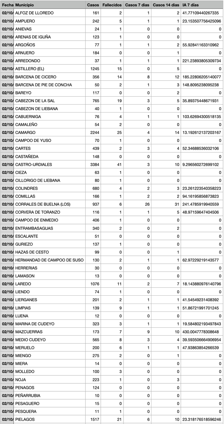 Para entender la tabla, Casos: Total desde el inicio de la pandemia. Fallecidos: Total desde el inicio de la pandemia. Casos 7: son casos nuevos en los últimos 7 días. Casos 14: Casos nuevos en los últimos 14 días. IA 7 días: Incidencia acumulada a 7 días sobre 100.000 habitantes.