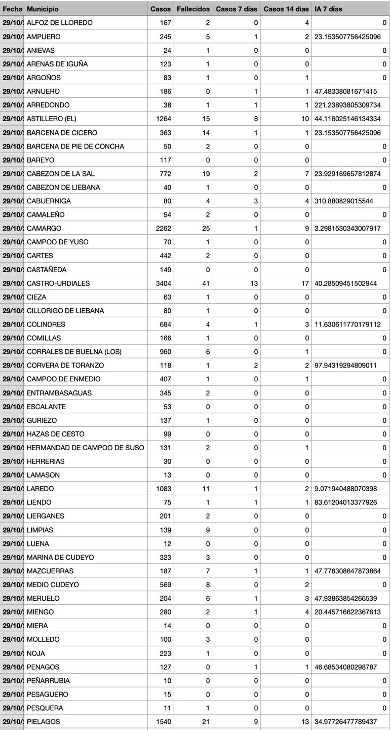 Para entender la tabla, Casos: Total desde el inicio de la pandemia. Fallecidos: Total desde el inicio de la pandemia. Casos 7: son casos nuevos en los últimos 7 días. Casos 14: Casos nuevos en los últimos 14 días. IA 7 días: Incidencia acumulada a 7 días sobre 100.000 habitantes.