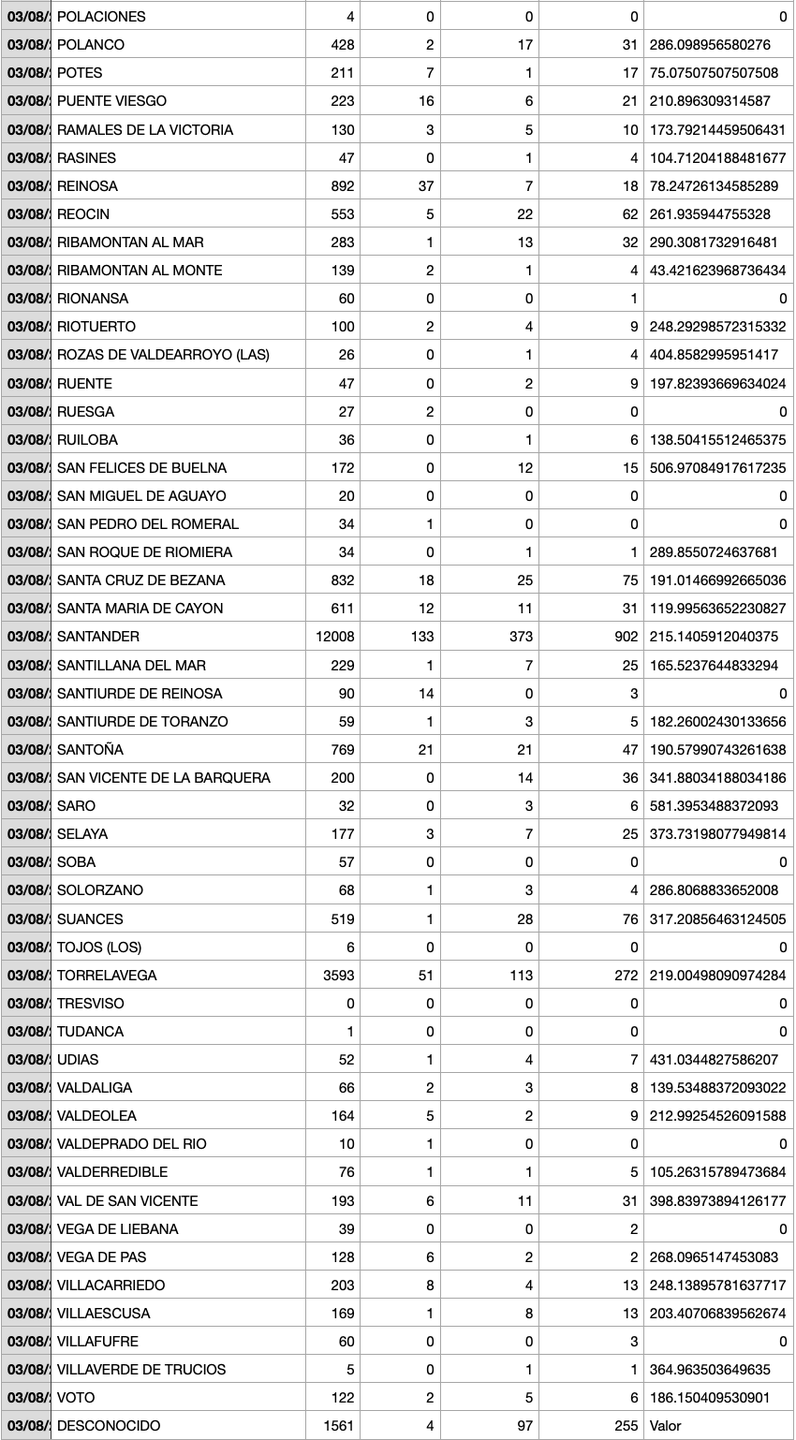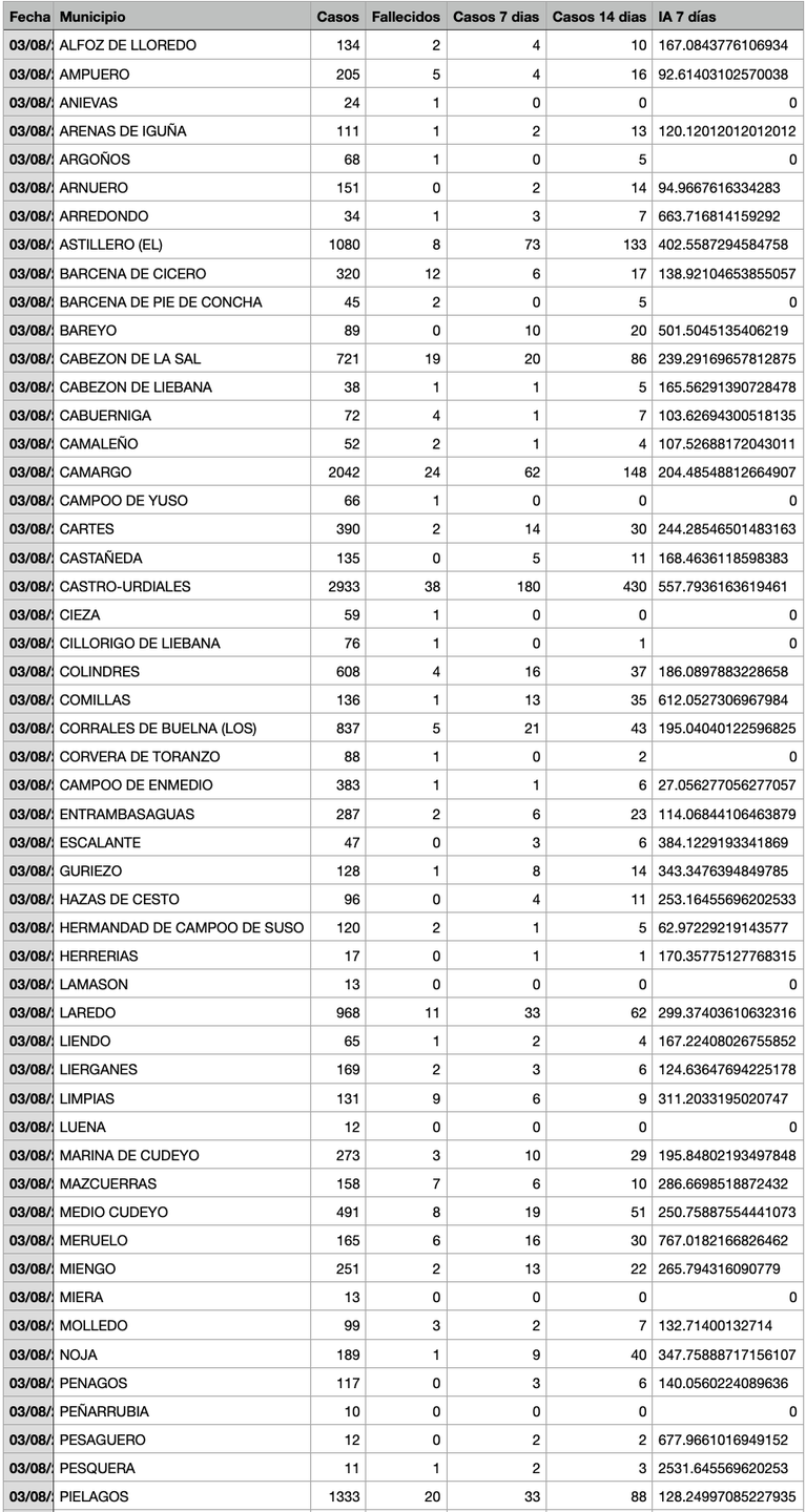 Para entender la tabla, Casos: Total desde el inicio de la pandemia. Fallecidos: Total desde el inicio de la pandemia. Casos 7: son casos nuevos en los últimos 7 días. Casos 14: Casos nuevos en los últimos 14 días. IA 7 días: Incidencia acumulada a 7 días sobre 100.000 habitantes.