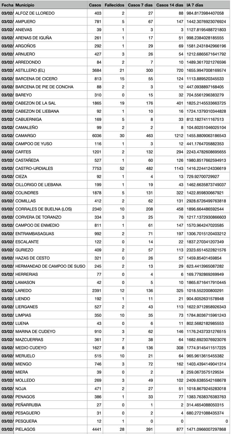 Para entender la tabla, Casos: Total desde el inicio de la pandemia. Fallecidos: Total desde el inicio de la pandemia. Casos 7: son casos nuevos en los últimos 7 días. Casos 14: Casos nuevos en los últimos 14 días. IA 7 días: Incidencia acumulada a 7 días sobre 100.000 habitantes.