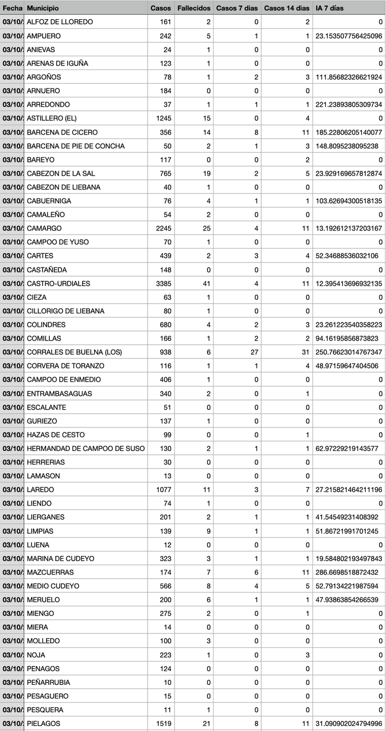 Para entender la tabla, Casos: Total desde el inicio de la pandemia. Fallecidos: Total desde el inicio de la pandemia. Casos 7: son casos nuevos en los últimos 7 días. Casos 14: Casos nuevos en los últimos 14 días. IA 7 días: Incidencia acumulada a 7 días sobre 100.000 habitantes.