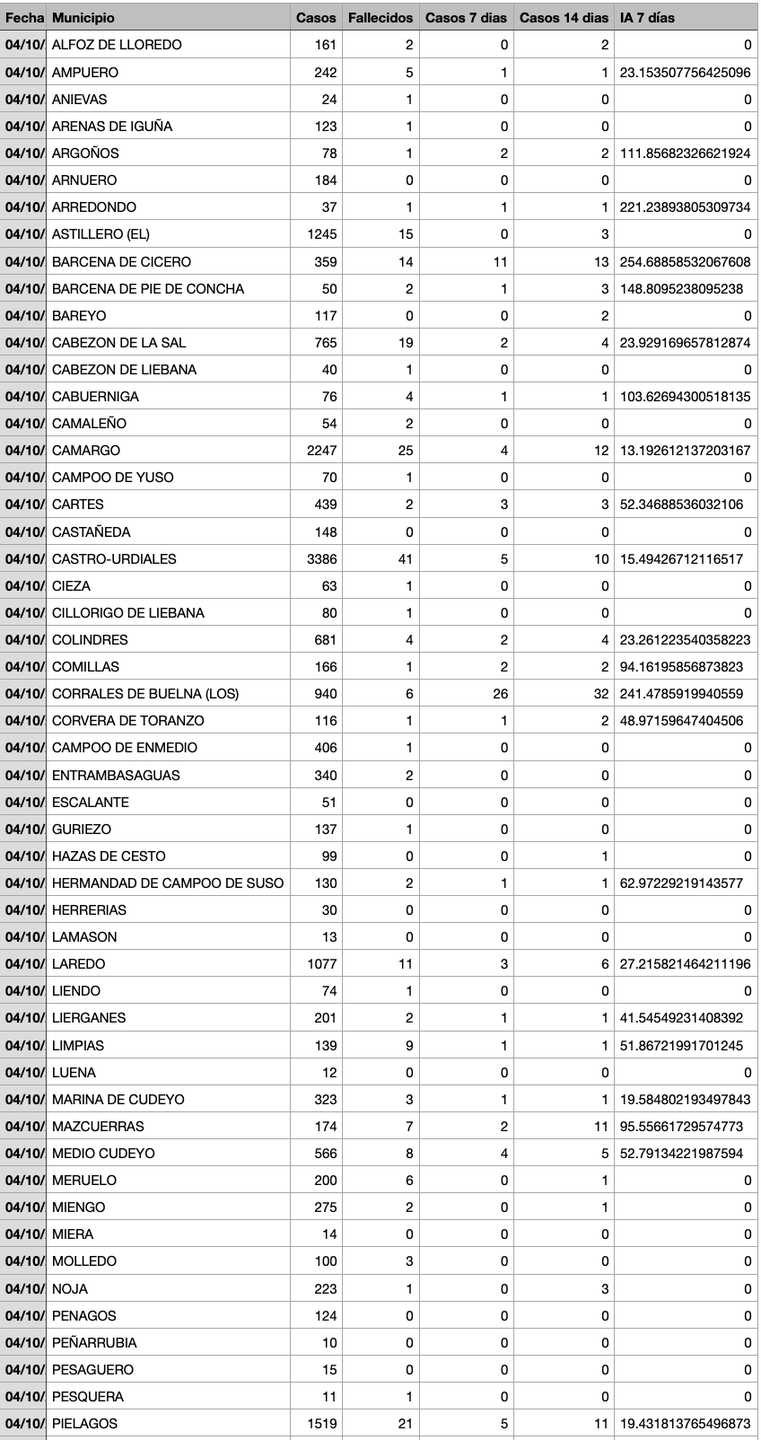 Para entender la tabla, Casos: Total desde el inicio de la pandemia. Fallecidos: Total desde el inicio de la pandemia. Casos 7: son casos nuevos en los últimos 7 días. Casos 14: Casos nuevos en los últimos 14 días. IA 7 días: Incidencia acumulada a 7 días sobre 100.000 habitantes.