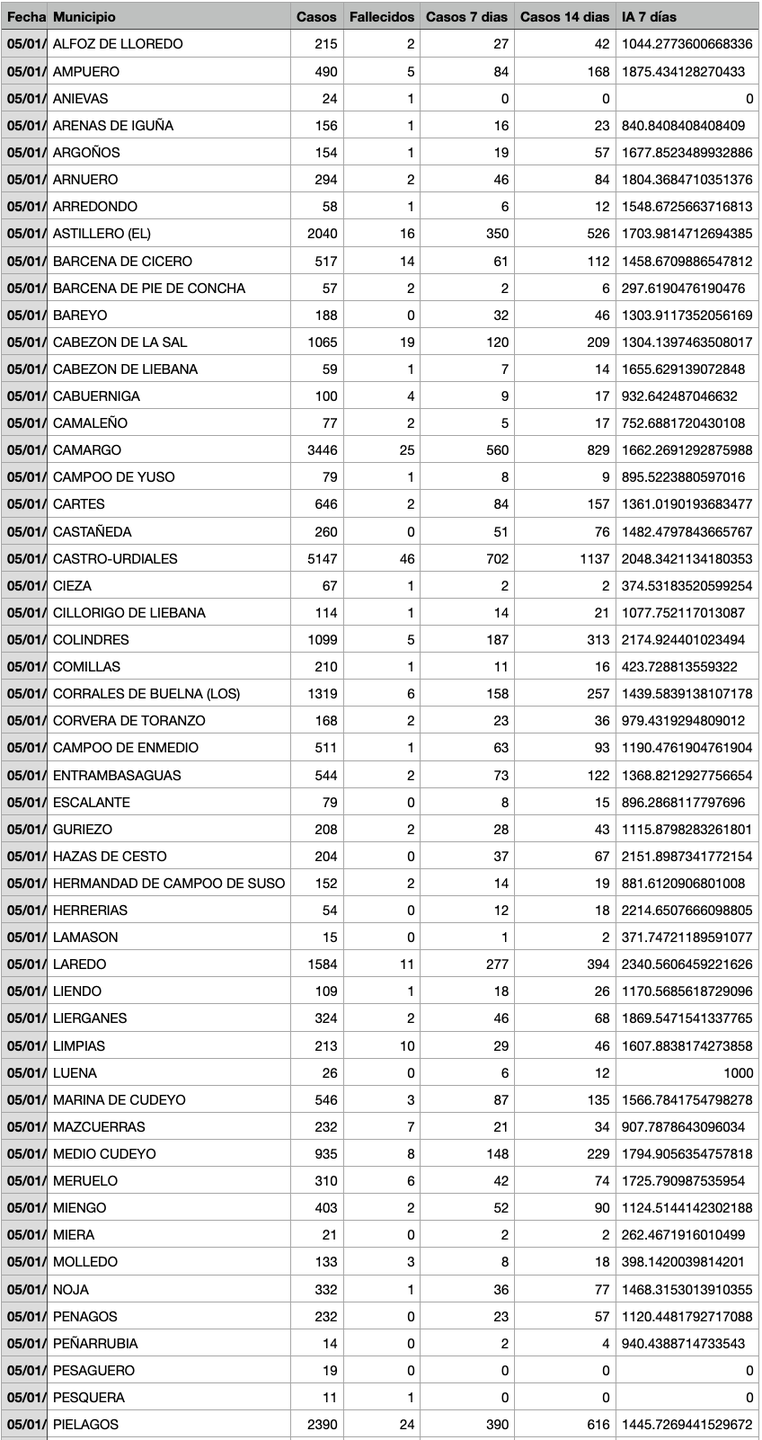 Para entender la tabla, Casos: Total desde el inicio de la pandemia. Fallecidos: Total desde el inicio de la pandemia. Casos 7: son casos nuevos en los últimos 7 días. Casos 14: Casos nuevos en los últimos 14 días. IA 7 días: Incidencia acumulada a 7 días sobre 100.000 habitantes.