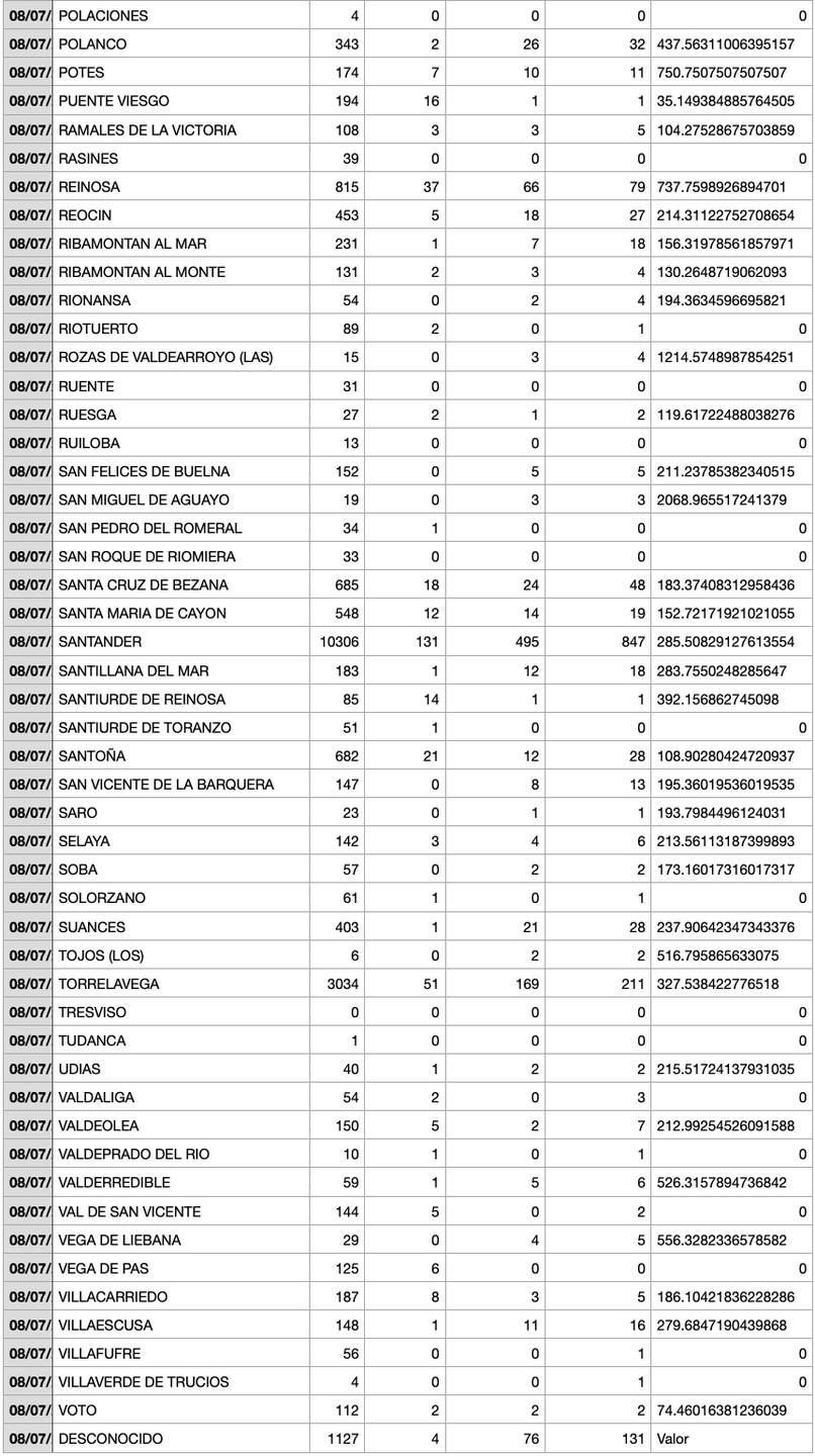 A continuación os dejamos las tablas de casos nuevos a 7 y 14 días por municipios, incluimos la INCIDENCIA ACUMULADA A 7 DÍAS, son los datos sumados hasta este jueves 8 a las 23:59 horas.