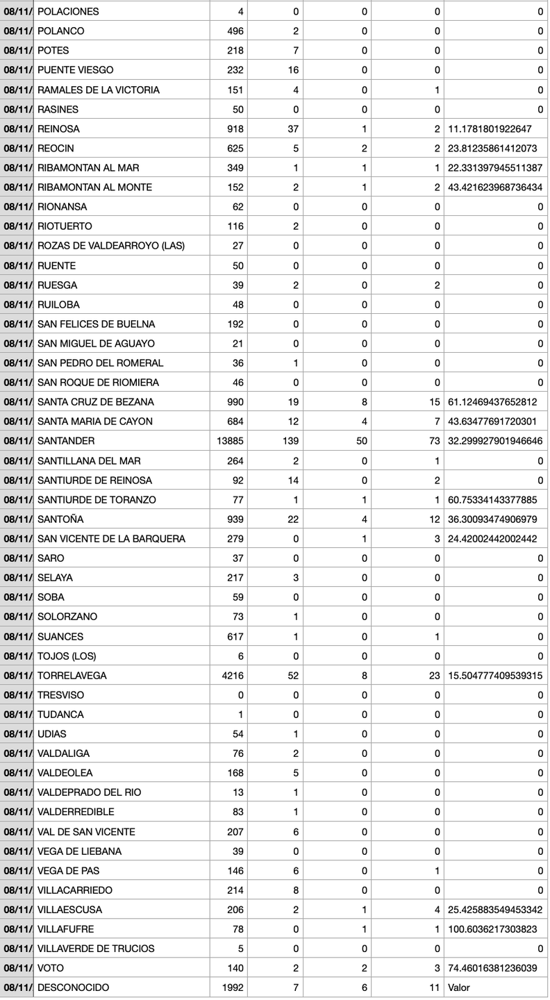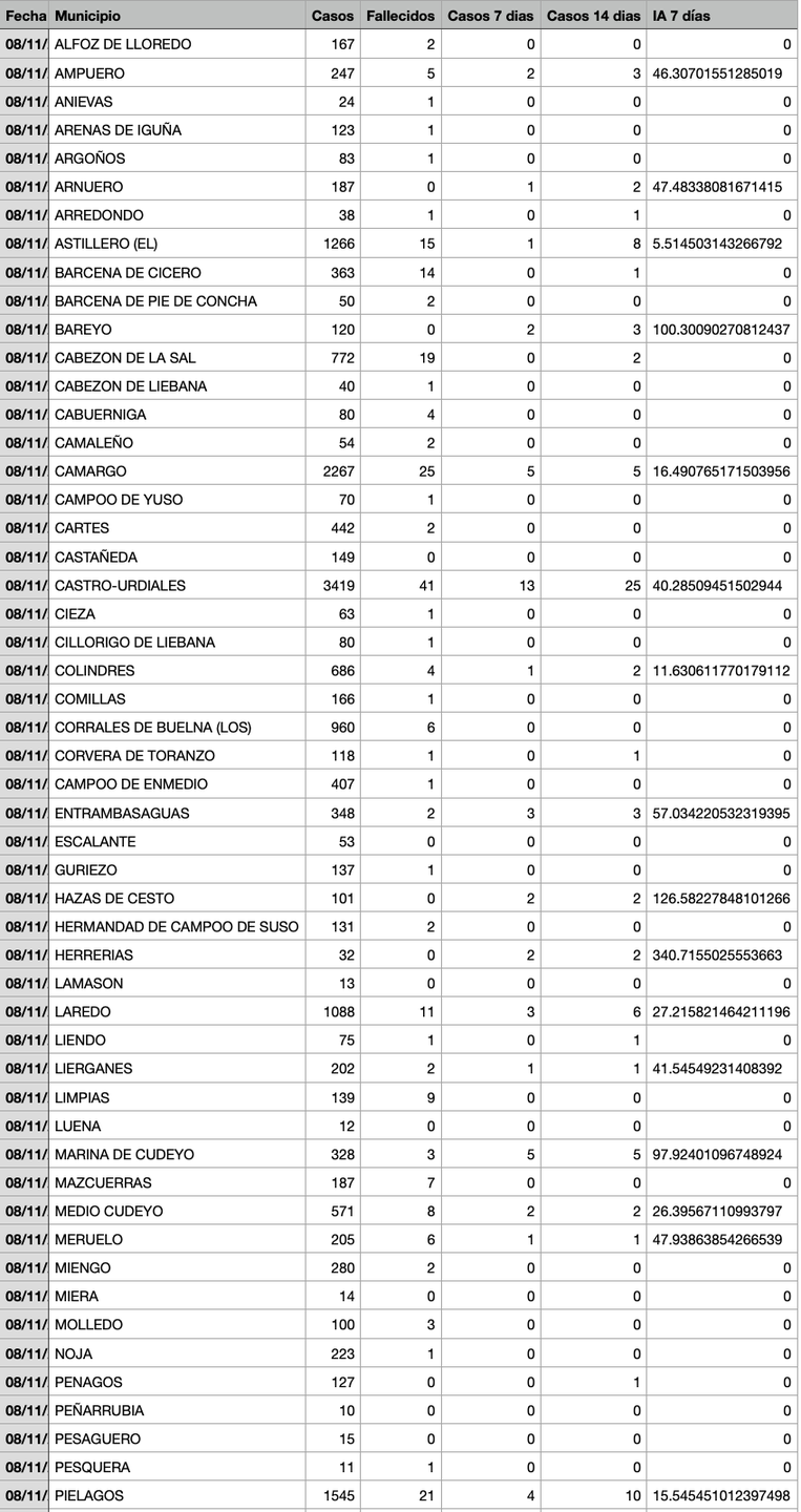 Para entender la tabla, Casos: Total desde el inicio de la pandemia. Fallecidos: Total desde el inicio de la pandemia. Casos 7: son casos nuevos en los últimos 7 días. Casos 14: Casos nuevos en los últimos 14 días. IA 7 días: Incidencia acumulada a 7 días sobre 100.000 habitantes.