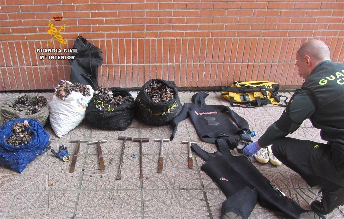 La Guardia Civil ha intervenido a un total de 83 kilos de percebes a un mariscador ilegal contra el que se han formulado varias denuncias tras estos hechos pero que ya acumula en torno al medio centenar de denuncias en esta materia.