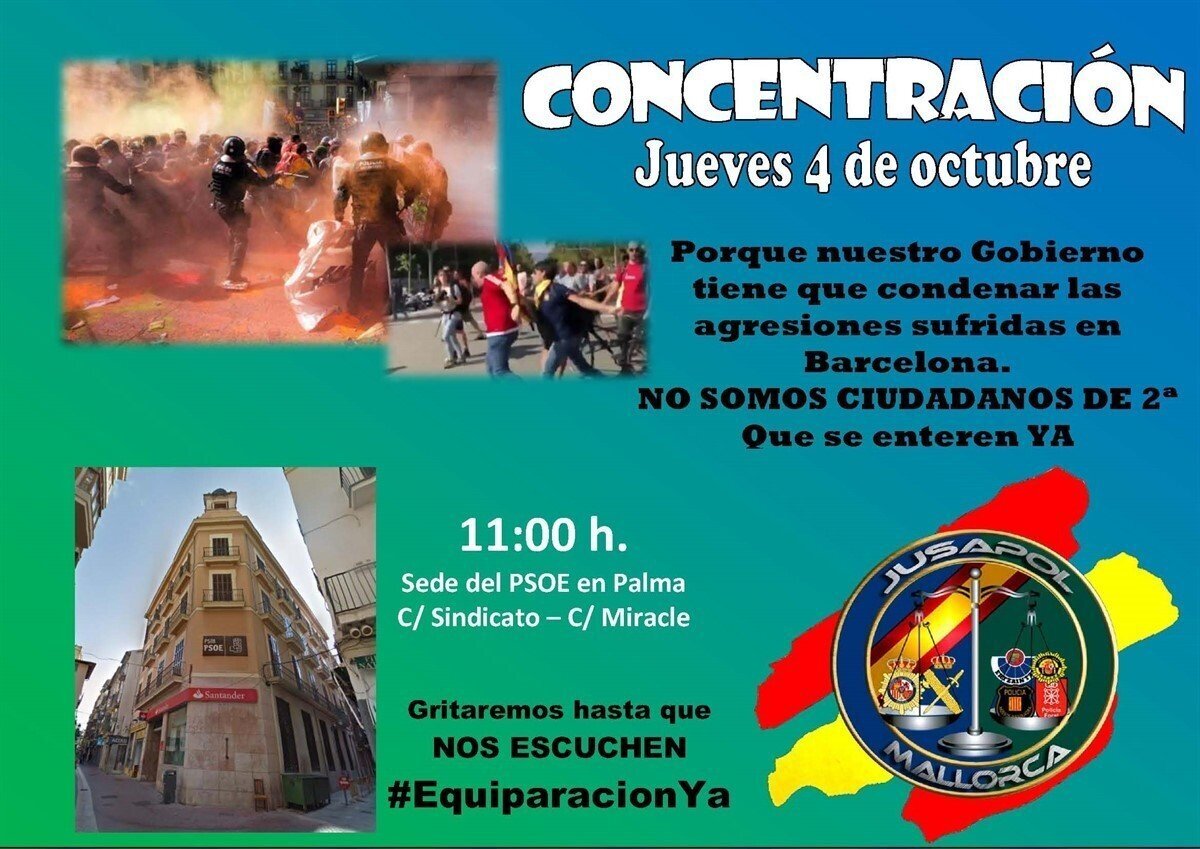 Se trata el de este jueves de un acto convocado en las sedes del PSOE --el partido del Gobierno de España-- de todo el territorio nacional para condenar la agresión que sufrieron algunos de los participantes en una manifestación de Jusapol celebrada el 29S para homenajear a los agentes que trataron de impedir el referéndum del 1-O en Cataluña.