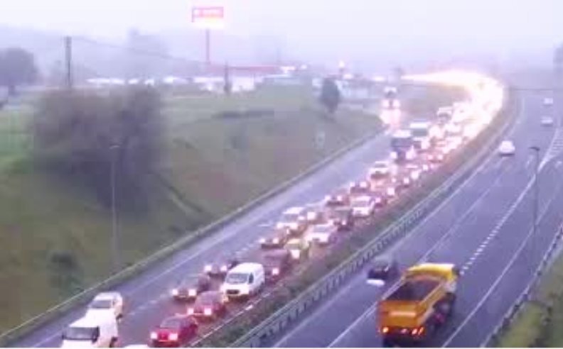 El origen es un accidente en la curva de la salida de la autovía a su paso por Mogro, el atasco llega ya a Requejada en la hora punta de la mañana.