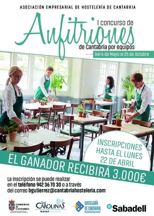 La Asociación Empresarial de Hostelería de Cantabria (AEHC) pone en marcha el I Concurso Anfitriones de Cantabria por equipos, un concurso que se desarrollará del 1 de mayo al 25 de octubre y en el que el ganador se llevará 3.000 euros de premio.