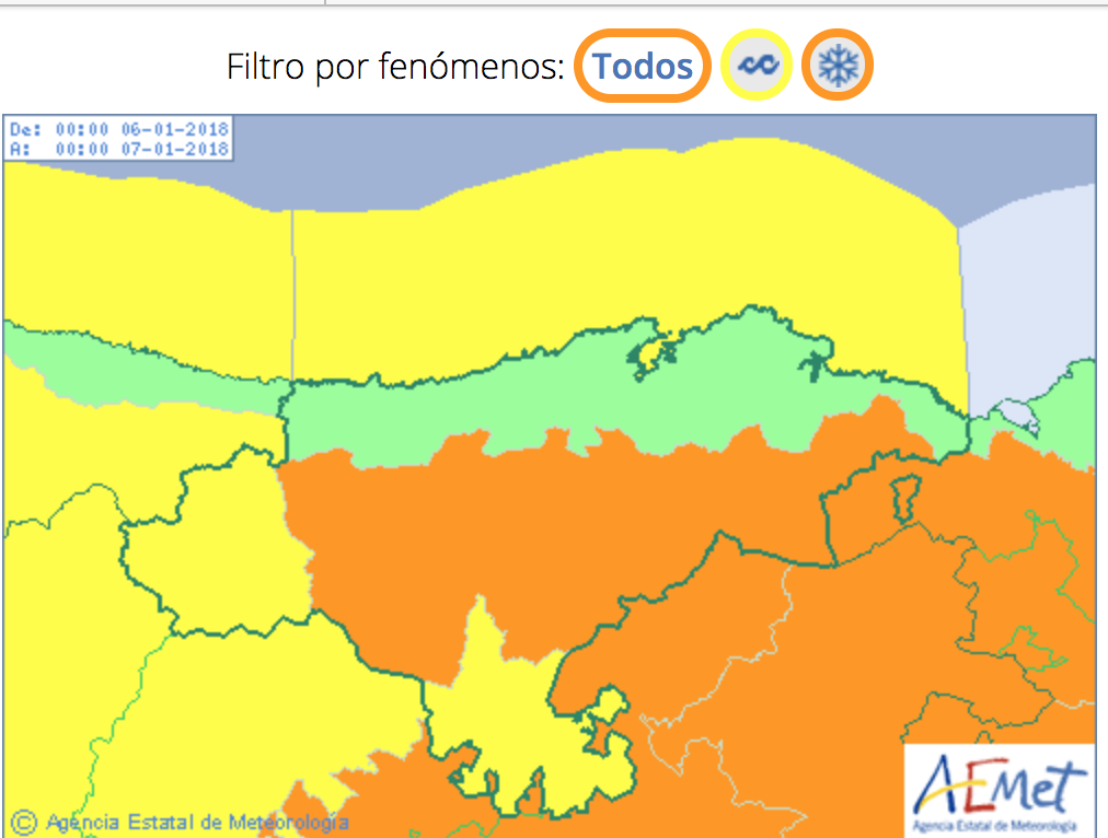 La borrasca se retrasa y AEMET activa aviso naranja por acumulaciones de 17cm en cota 600 m