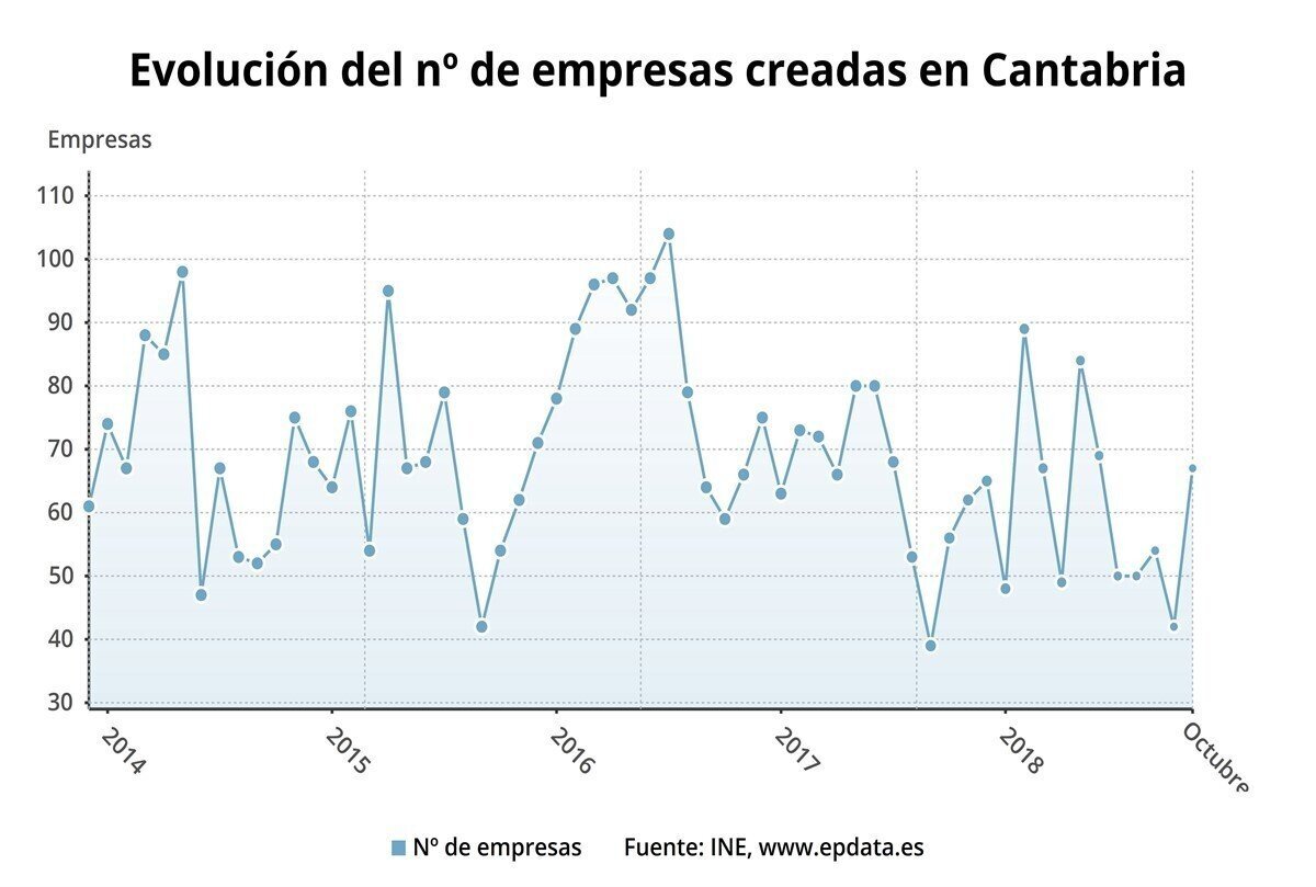 La constitución de nuevas sociedades mercantiles creció un 8,1% en Cantabria en octubre en términos interanuales, por encima de la media nacional (6,8%), según datos del Instituto Nacional de Estadística (INE).