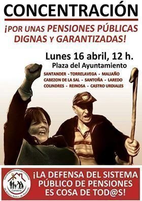 La Coordinadora de Cantabria en Defensa de las Pensiones ha convocado este lunes, 16 de abril, concentraciones en siete localidades de la comunidad autónoma en defensa de unas pensiones públicas y dignas.