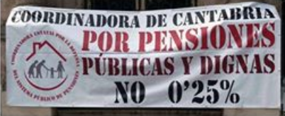 La Coordinadora de Cantabria, adherida a la Coordinadora Estatal en Defensa de las pensiones Públicas, recuerda en un comunicado que sus reivindicaciones pasan por recuperar lo perdido desde 2011, jubilación a los 65 años y acabar con las sucesivas reformas laborales y de las pensiones.