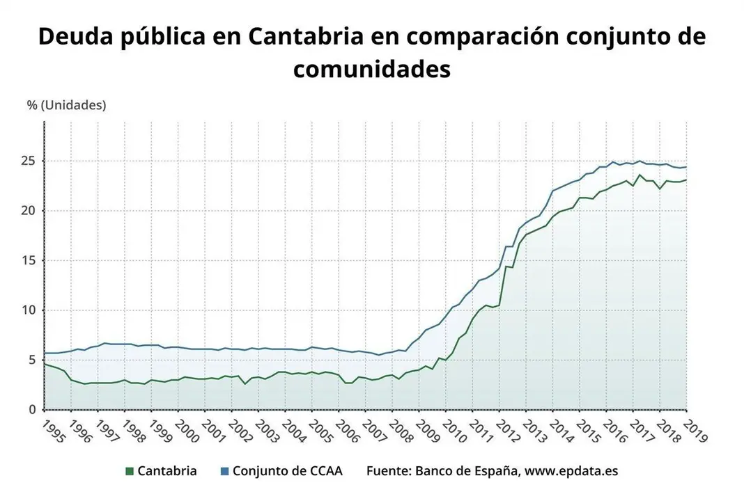 Cantabria es la segunda comunidad autónoma con una deuda más baja en términos absolutos tras La Rioja (1.636 millones), pero la octava con mayor proporción de deuda respecto al PIB.