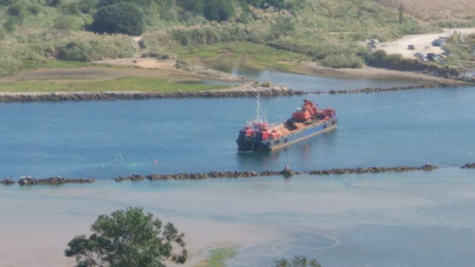 La draga de la ría de San Martín se encuentra en este momento a la deriva en Suances