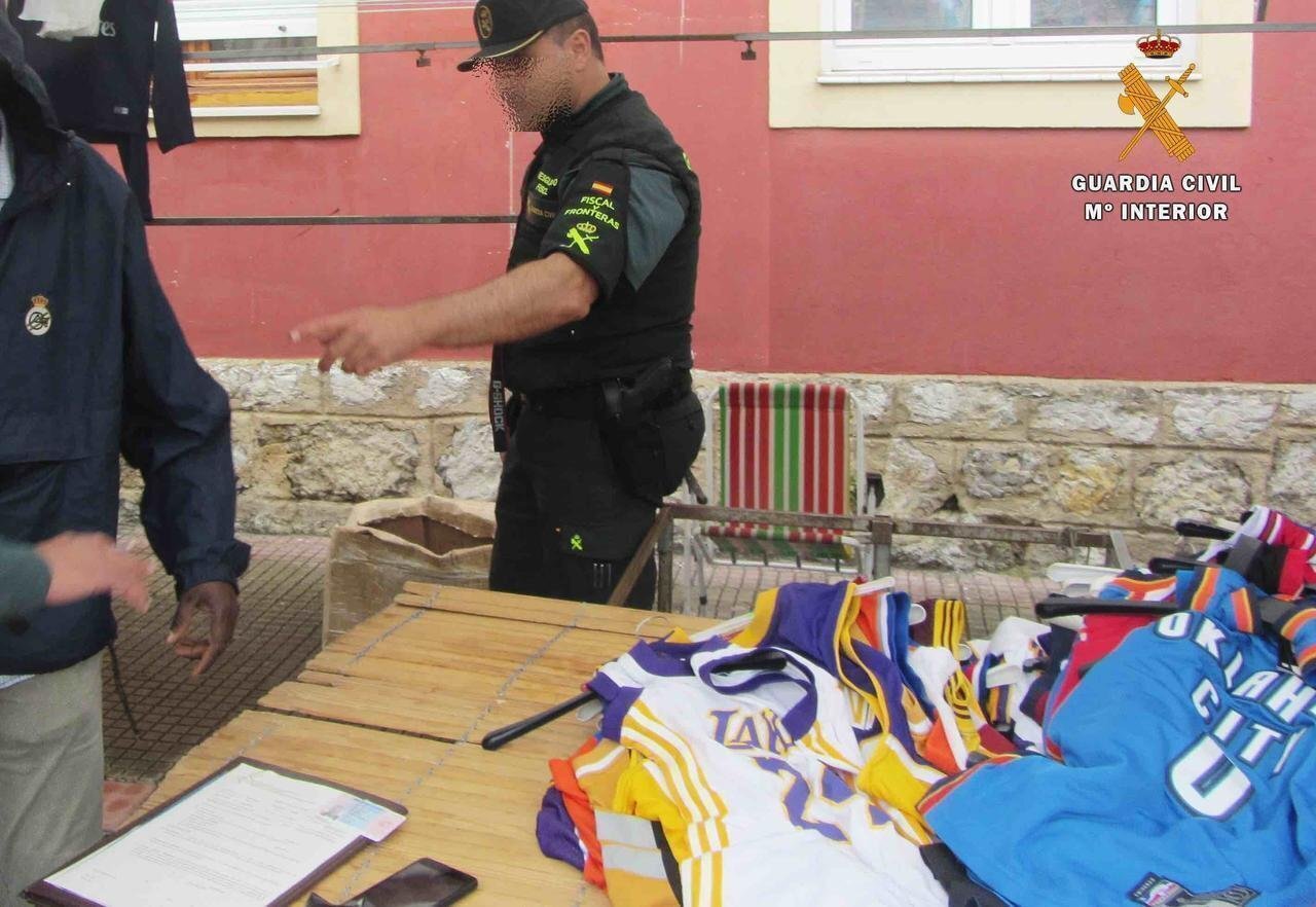 Desde el pasado día 27 de mayo, la Guardia Civil de Cantabria ha llevado a cabo cuatro intervenciones en los mercadillos de Castro Urdiales, Colindres y Oriñón, en las que ha investigado a siete varones de nacionalidades, española (2), senegalesa (4) y egipcia (1), por un presunto delito contra la propiedad industrial. Así mismo se han incautado cerca de 350 prendas cuyo valor asciende a más de 15.000 euros.